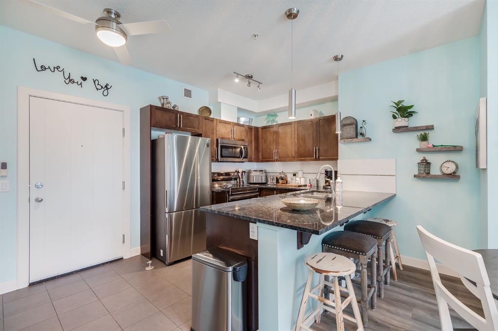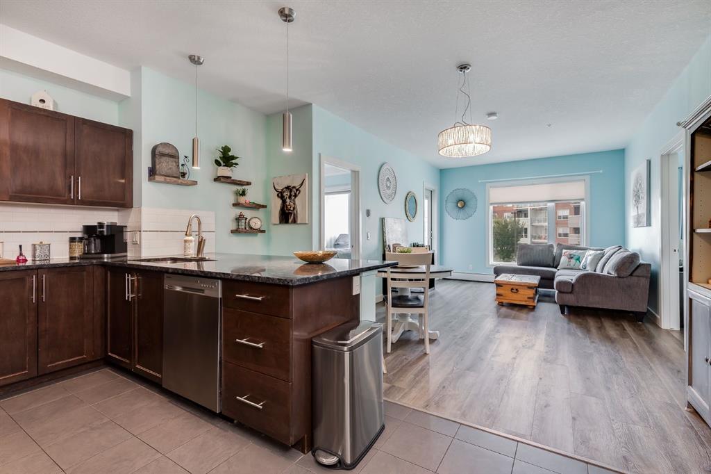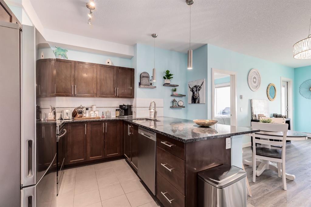 If you are looking for a home that is Furnished, Decorated, has Kitchenware, Underground Parking, and is Ready for a Quick Possession, then this is going to be perfect for you! This Lovely 2 Bedroom, 2 Bath, plus a Den Condo has been beautifully painted and decorated and features 9-foot Ceilings, Oversized Windows for lots of natural light, includes newer Luxury Vinyl Plank Flooring, Blinds, California closets and Phantom Retractable Screens. The Kitchen is a Chef’s Dream featuring modern Cabinetry, Stainless Steel Appliances, Granite Countertops, and Large Island with lots of space for extra seating. The Living Room has a Large Window and opens to the West Facing Balcony. The Primary Bedroom has a fabulous walk thru closet with California Closet System for lots of storage, and has the 3 pc Ensuite with a large Shower Stall. Bedroom 2 is also quite spacious with a large closet. There is also a Large Den perfect for an Office or for Extra Storage with built in Cabinets, and a 4 Pc Bathroom. The TITLED UNDERGROUND PARKING Stall has a storage cage for your extra items. This great Condo is close to Restaurants, Transportation, Walking Trail around East Lake, is steps from Genesis Place, and has easy access to QE2. Come and view it today and let’s make it yours.