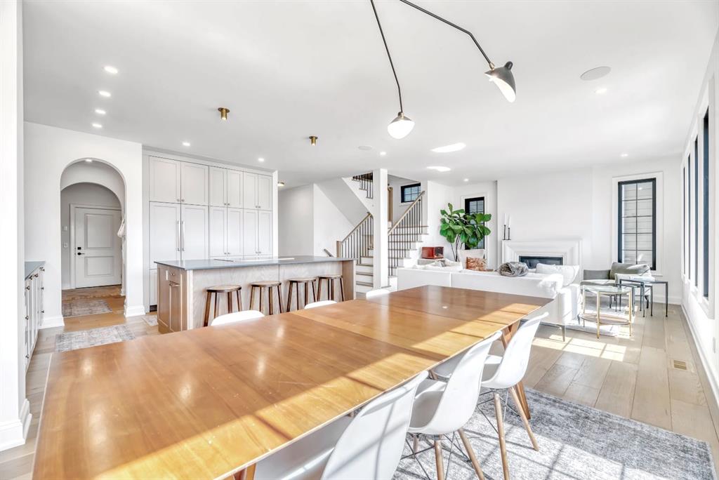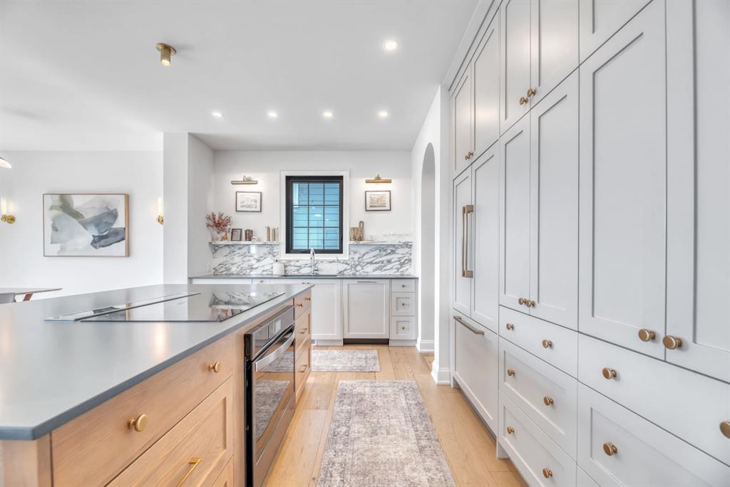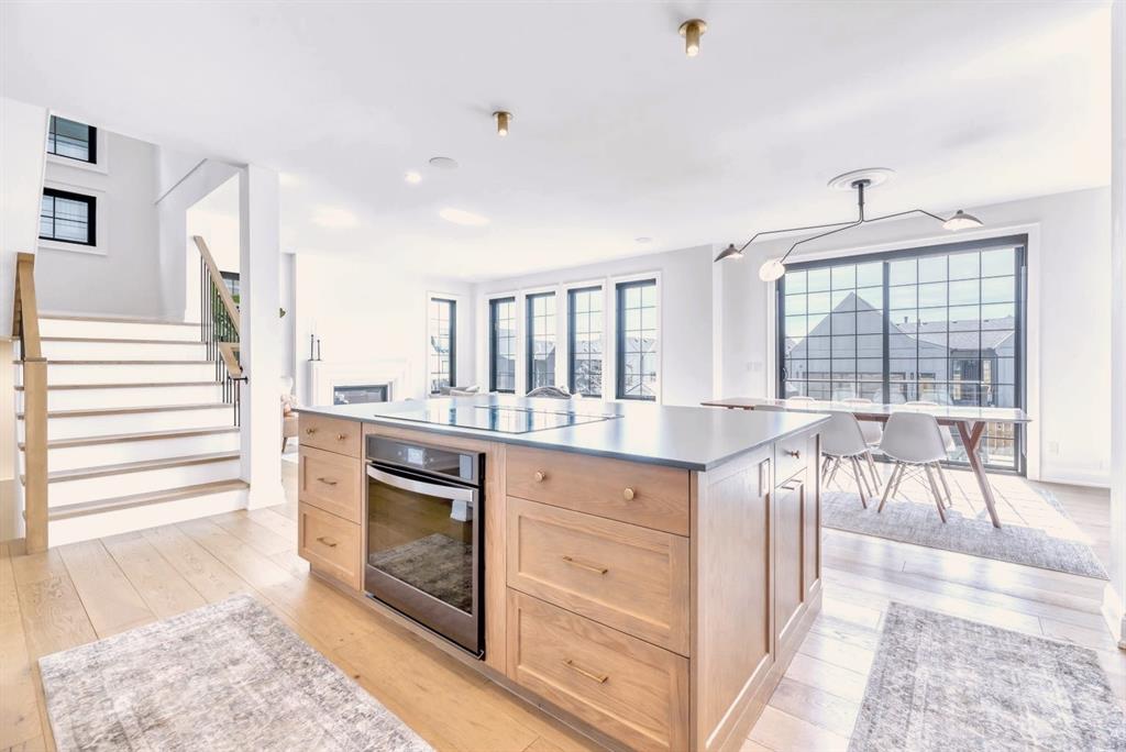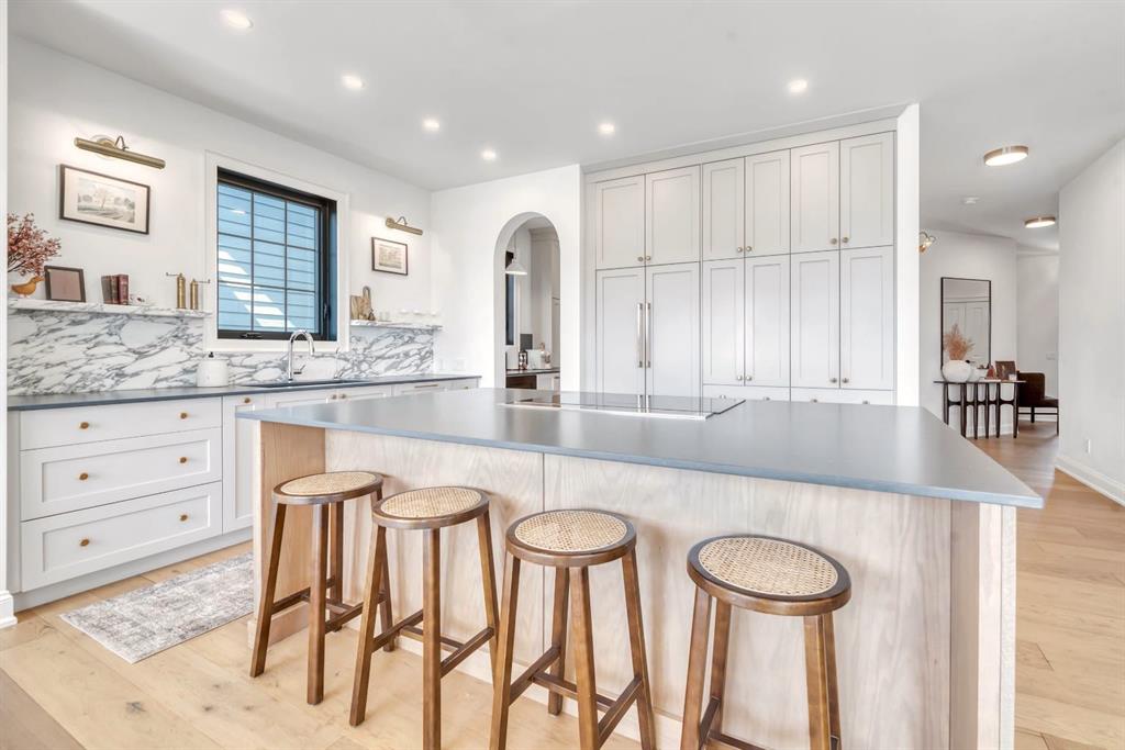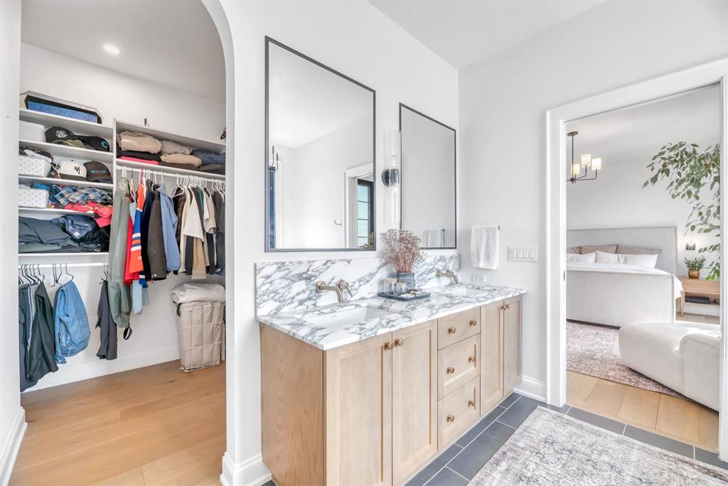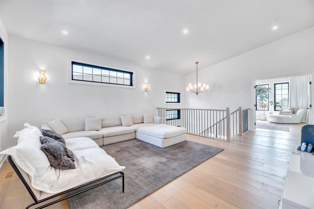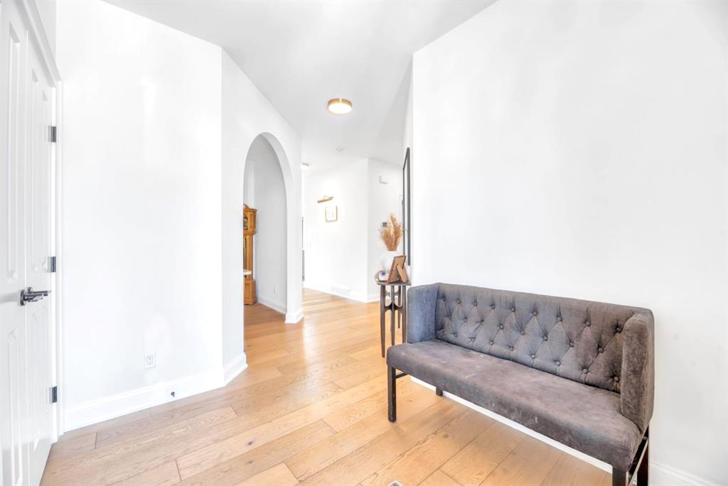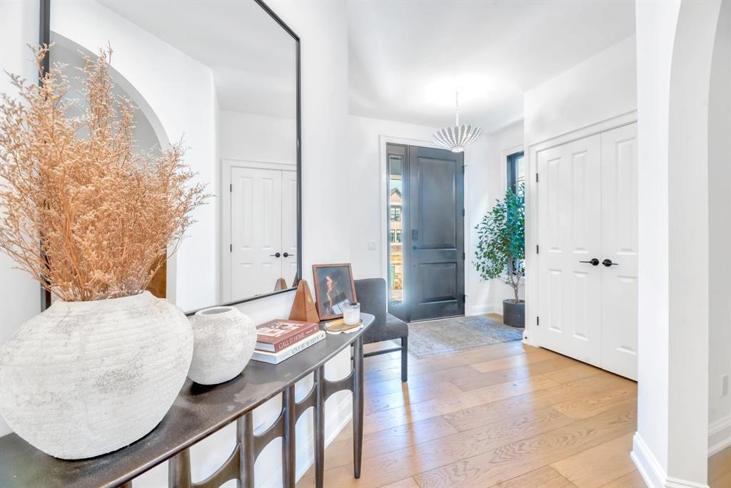 Welcome to an architecturally inspired Organic Modern residence in the award-winning lake community of Harmony—where elevated design meets an unmatched lifestyle just minutes west of Calgary. Enjoy quick access to the city, the renowned Mickelson National Golf Club, and a growing collection of amenities including the lake, beach, pathways, parks, and future village centre—offering a rare blend of recreation, convenience, and community. This modern transitional home offers over 2,700 sq ft of thoughtfully curated living space, combining clean architectural lines with warm, organic finishes. From the moment you arrive, the herringbone brick walkway, soft neutral palette, and striking black-framed windows set the tone for what’s inside. Step into a light-filled interior defined by wide plank natural white oak flooring, soaring ceilings, and custom archways that soften the modern aesthetic and create a sense of flow throughout. The main floor features a stylish front office/den, perfect for working from home, while the open-concept living space is both refined and inviting. At the heart of the home is a stunning designer kitchen that perfectly captures today’s most sought-after style—featuring marble backsplash, marble and honed quartz surfaces, panel-ready appliances, and an induction cooktop with a concealed hood fan. A thoughtfully designed coffee bar and walk-through pantry connect seamlessly to the mudroom, where custom cabinetry and chevron brick flooring elevate everyday function with designer flair. Upstairs, the home continues to impress with 4 spacious bedrooms plus a lofted bonus room with a half-vault ceiling, creating a bright and airy retreat. The primary suite is a true sanctuary, complete with custom drapery and a spa-inspired ensuite featuring floating vanities, wall-mounted faucets, a freestanding soaker tub with bath filler, and a large glass-encased marble shower. The main bathroom is ideal for family living, offering a smart layout with a separate vanity area from the water closet. Every detail has been carefully selected—from champagne bronze hardware and custom lighting to elevated millwork, trim, and finishes throughout—creating a cohesive, high-end aesthetic that feels both modern and timeless. Outdoor living is equally impressive with a composite deck (with storage below), stone patio, and hot tub, plus gas lines to the deck, patio, and garage—perfect for entertaining year-round. Additional features include hot and cold exterior taps, Gemstone permanent soffit lighting, a reverse osmosis system, and a sunshine basement filled with natural light and ready for future development. Sod will be completed as weather permits. Complete with a double attached garage and located in one of the most desirable communities in the Calgary area, this home offers a rare opportunity to own a design-forward, move-in ready property in Harmony. Modern. Warm. Effortlessly elevated.