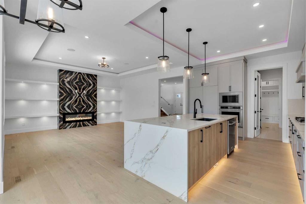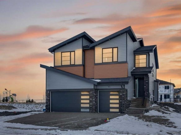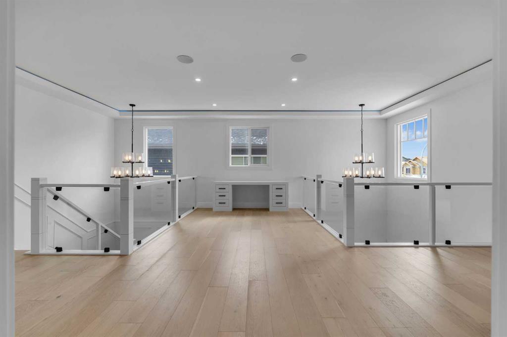 AMAZING OPTION FOR YOU – BUILDER WILLING TO BUILD A LEGAL SUITE W 2 BEDS & 1 FULL BATH (COST TO BE DETERMINED BASED ON REQUIREMENTS & LEGAL SUITE DEVELOPMENT IS SUBJECT TO CITY APPROVAL) – OVER 3200 SQFT, BRAND NEW HOME, TRIPLE ATTACHED GARAGE, 5 BEDROOMS, 4 BATHROOMS, SIDE ENTRANCE TO BASEMENT – ELEGANT DESIGN AND MODERN FINISHING – This home in Kinniburgh is perfect for a large family and offers the convenience of being close to shops, schools, the lake and all that Chestermere has to offer. Walking in to your home you are greeted with a large foyer and storage space. A hallway connects a den (that can be used as a bedroom), and bathroom to the rest of the main living space. The TRIPLE ATTACHED GARAGE, opens into a mud room and SPICE KITCHEN which allows you to keep your home in pristine condition. The kitchen is a chef’s dream with built in STAINLESS STEEL appliances, a large island and beautiful wood finished cabinets. A large living room is warmed with a TILE FACED FIREPLACE, and this space opens onto your DECK. The second floor boasts 4 bedrooms and 3 bathrooms. Including 1 primary ensuite with and expansive 5PC bathroom and a large walk in closet. This bathroom has a full size soak tub and dual vanities. Another bedroom is complete with an ensuite bathroom and walk in closet. 2 other bedrooms and 1 bathroom, laundry and a large family room complete this floor. Welcome to your home! Please note that front landscaping and finishing will be done including a tree. Option for the builder to develop the basement already includes SIDE ENTRANCE. Interior pictures are from another home built by the builder.