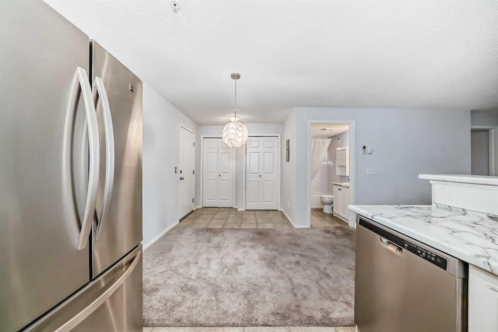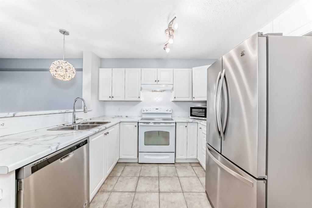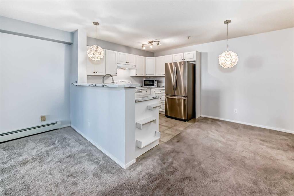 Welcome to this 2 bedroom/2 bathroom unit in the heart of Bridlewood with super easy and quick access to Stoney Trail! This unit has a great functional open floor plan with the kitchen being the focal point and has a newer fridge and dishwasher (stainless steel), updated lights, white cabinets and tiled backsplash. Beside the kitchen is an eating area and a large living room with access to the great sized and sunny west facing balcony! The primary bedroom has a walk in closet and a full ensuite bathroom for convenience and there is a second bedroom and another full bathroom as well! This unit is a bit of a unicorn as it has central A/C and the owner believes he may be only one of a couple of units that have it (grandfathered in) there is also in suite laundry, titled underground heated parking with a storage locker beside it and the parking stall is DIRECTLY beside the door to the elevator – so just a few steps! Condo fees include all the utilities (heat, water & electricity) Perfect for first time buyers, someone looking to downsize or a great revenue property! This home is also conveniently located close to multiple shops, schools, parks, playgrounds, Costco, restaurants, pubs, Fish Creek park and so much more! This one is a winner and priced competitively!
