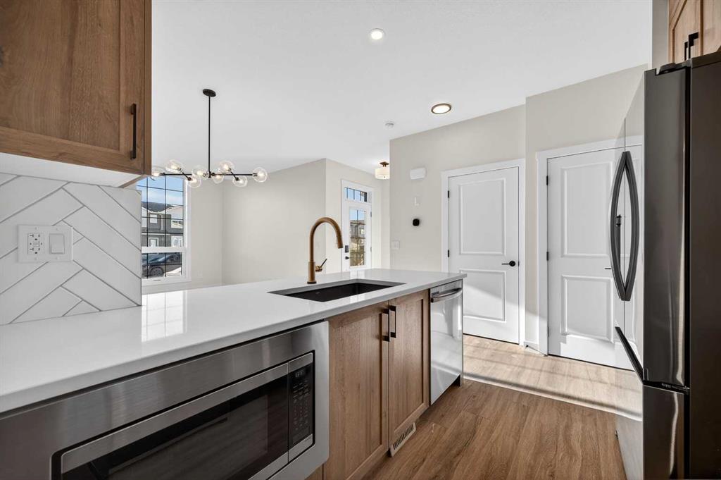 Welcome to 2238 Bayview Drive, a beautifully designed END UNIT street-side luxury townhome with NO CONDO FEES and a SEPARATE ENTRANCE! The Jasper townhome features an attached double garage, a rooftop patio, and low-maintenance living. The tastefully designed home offers over 1400 sq ft. of above-grade living space plus an unfinished basement with 9′ ceilings, ready for your design ideas. On the main floor, you will find soaring ceilings in the open-concept living space and large windows that let natural light flow through. The chef-inspired kitchen offers beautiful cabinetry and stone countertops and is well-equipped with stainless steel appliances. The kitchen is open to the dining and living room, perfect for entertaining family and friends. Complimenting the main floor is a convenient half bath, storage and entry from the attached garage. Venturing upstairs, you will find a spacious primary retreat with a spa-like ensuite, a spacious shower, and a generous walk-in closet. Two additional bedrooms, a full bath, a 4-piece bath and laundry complete the upper level. Outside, enjoy spending time on your upper rooftop patio, which is situated above the garage. The basement offers a separate entrance, 9’ ceilings, and is ready for your creative design ideas. Bayview is a beautiful community with parks, benches and pathways that meander throughout the community and along the canals. Kids and adults alike will enjoy the outdoor basketball nets, gym, amphitheatre, and tennis courts, which convert into a skating rink in the winter. Come and see all the amenities the community offers for yourself! *RMS has been applied to the construction drawings provided by the builder. Taxes to be assessed.
