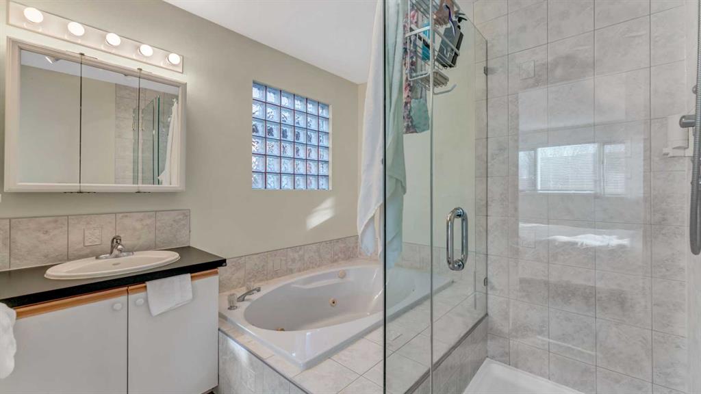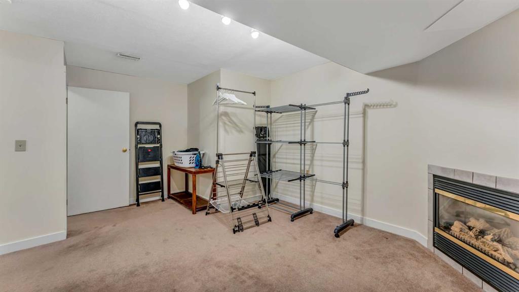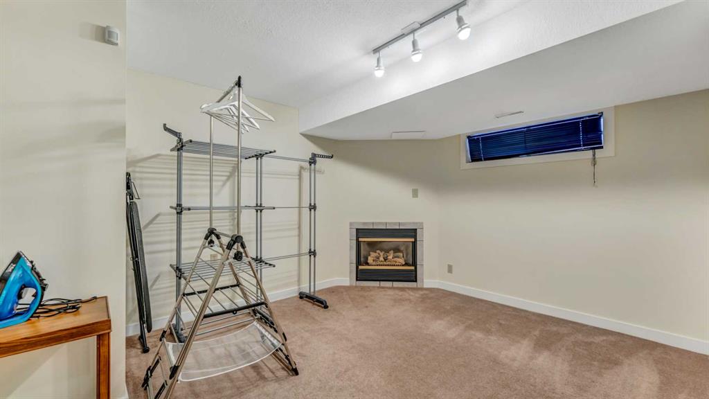 Inside, the bright and open living space is warmed by a 3-way gas fireplace, perfect for cozy evenings or hosting guests. For those warm summer days, enjoy the comfort of central air-conditioning. The kitchen island with bar seating makes meal prep easy and social, while the renovated kitchen (2015) ensures modern function and style. Upstairs, the spacious primary bedroom includes a unique ‘turret’ nook, ideal for a reading spot or home office. The ensuite features a soaker tub, separate shower, and a walk-in closet. The large second bedroom has two double closets, offering plenty of storage. The finished basement provides extra living space with a gas fireplace, 3 piece bathroom, 3rd bedroom with full egress, extra storage areas, and a dedicated laundry room. Outside, the private backyard features a 2-tiered deck with 2 gas hookups, perfect for summer BBQs or relaxing in the sun.