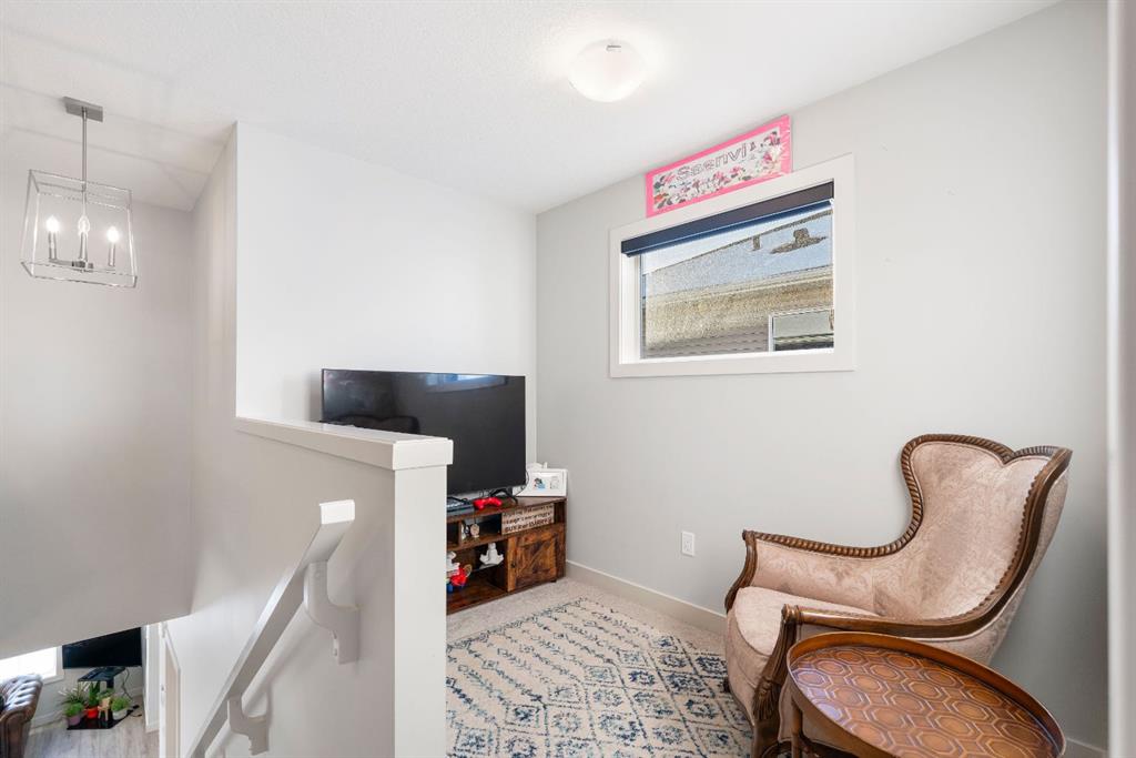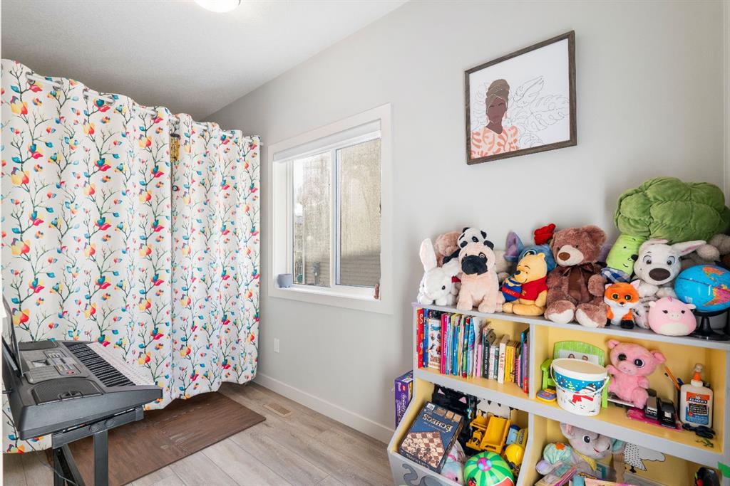 Upstairs, you’ll find a charming tech or kids’ play nook, followed by three generously sized bedrooms, many with beautiful valley views. The primary suite features a well-appointed ensuite with dual vanities, a walk-in closet, and a glass-enclosed standing shower. A full shared bathroom and stacked laundry complete this level.