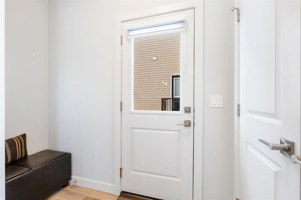 As you step inside, you are immediately welcomed by a bright and inviting living area, enhanced by large windows and automated blinds for added comfort and convenience. The dining space flows effortlessly into the impressive chef-inspired kitchen, showcasing quartz countertops, premium appliances, full-height cabinetry, elegant gold hardware, and a matching gold faucet. A spacious centre island doubles as the perfect breakfast bar. Tucked away on the main floor is a private den—ideal for a home office or study.