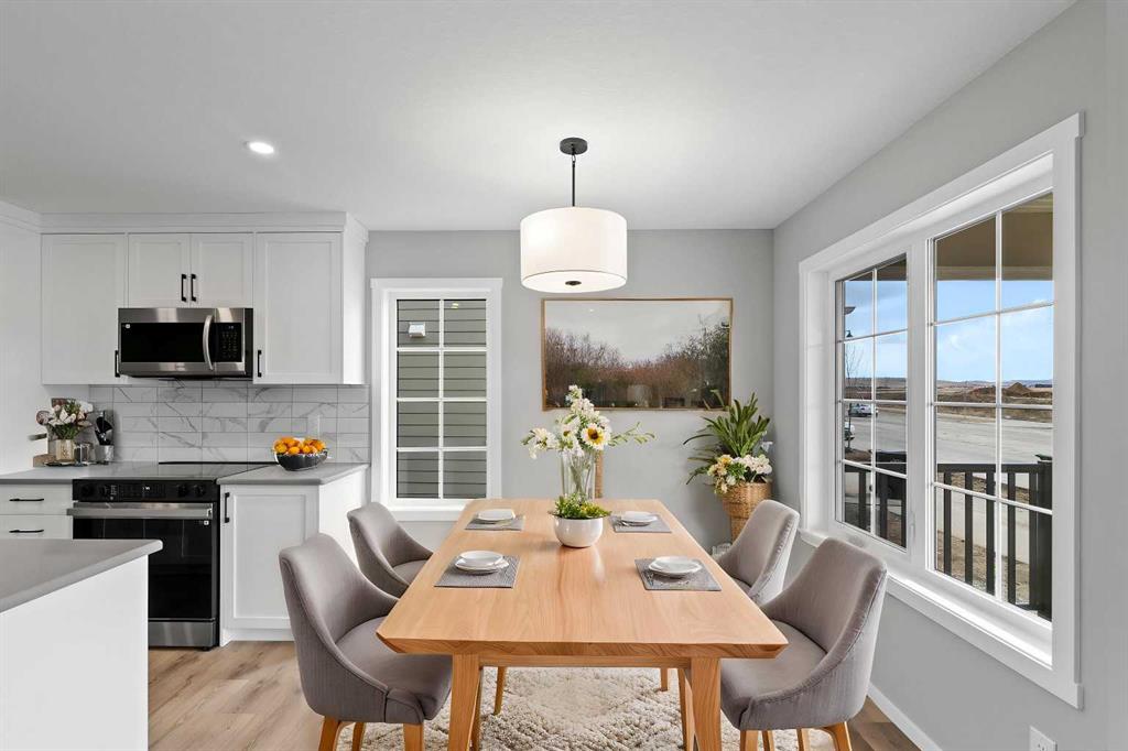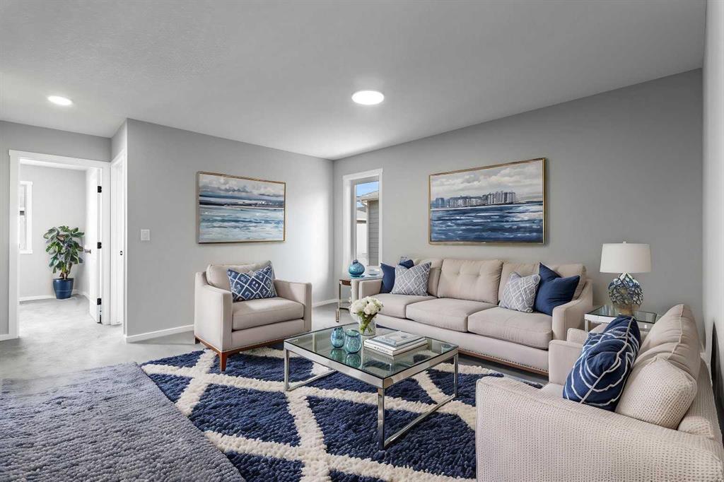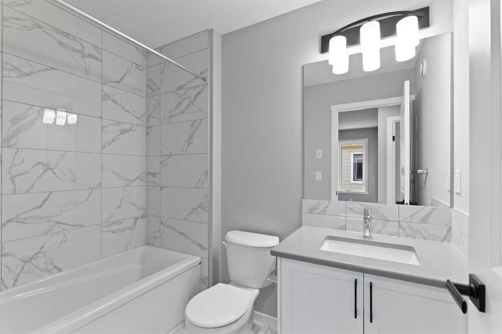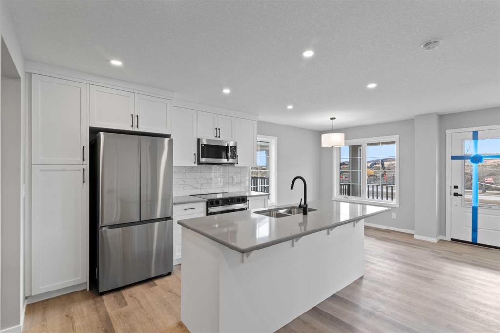 functional layout boasting 3 beds / 3 baths and over 1500 sq ft of finished living area. This home has also been highly upgraded throughout – raised kitchen cabinets with crown molding, upgraded luxury vinyl plank, quartz countertops, tiled bathroom walls, as well as many additional pot light fixtures. Upon entry the open concept is exemplified with an inviting Kitchen/Dining/Living space on the main floor. The kitchen is equipped with stainless steel appliances, full height kitchen cabinets, and loads of counter space and storage! There is also a cozy living room, a large pantry closet, a 2 piece bath and double attached garage. Upstairs, the primary bedroom is bright and spacious and has a private 4 piece ensuite with a large walk- in shower. The bonus room provides more privacy for the primary bedroom from the other 2 bedrooms upstairs. There is also a full laundry room and a 4 piece bath that completes the upstairs. The lower level is bright and has a 3 piece bathroom rough-in that is perfect for a future bathroom. This amazing home is also conveniently located minutes away from the Somerset LRT STATION, large Commercial Centers that include IKEA, T & T Asian Market, the Tsuut’ina Costco, the South Health Campus Hospital and has quick access to highways. This is the perfect home for you. Book your showings today!