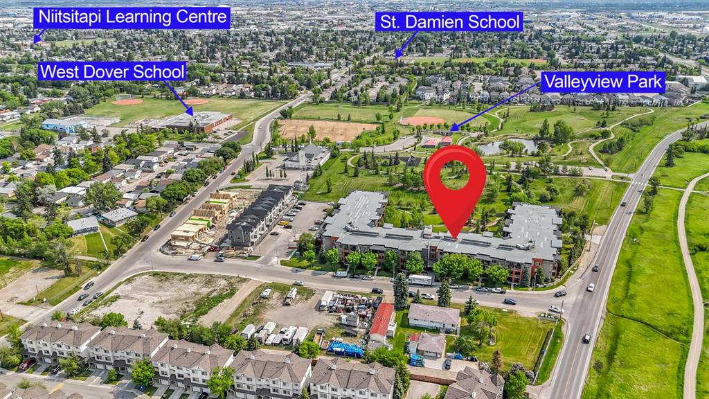 This professionally managed, pet-friendly complex (with board approval) is just 10 minutes to downtown and offers quick access to Deerfoot Trail, Franklin CTrain Station (3.3 km), and multiple bus routes. It’s also steps to Valleyview Park, with a spray park, volleyball courts, playgrounds, and a toboggan hill—and connects directly to the Bow River Pathway, perfect for walking or biking with views of the downtown skyline.