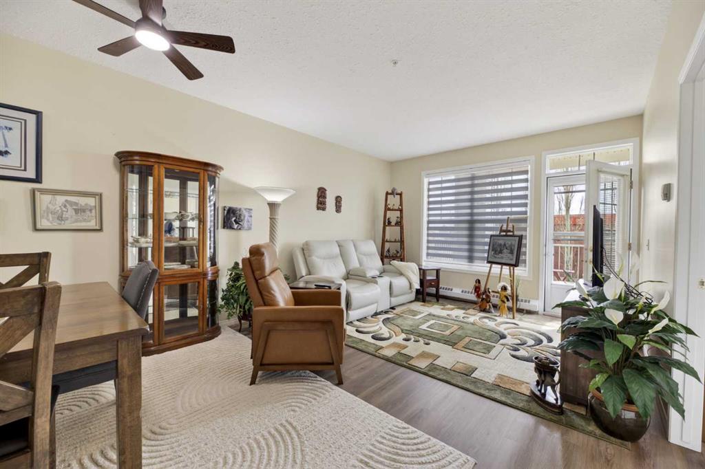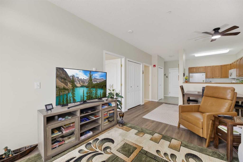 Welcome to easy, carefree living in this well-maintained 55+ condo, perfectly located near Uptowne Olds and all the amenities you need! This home features a bright open-concept layout connecting the kitchen, dining, and living areas—ideal for both everyday living and entertaining. The functional kitchen offers ample cabinetry and workspace, flowing nicely into the dining area and comfortable living room. The upgrades include paint and vinyl plank flooring throughout.