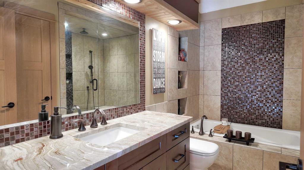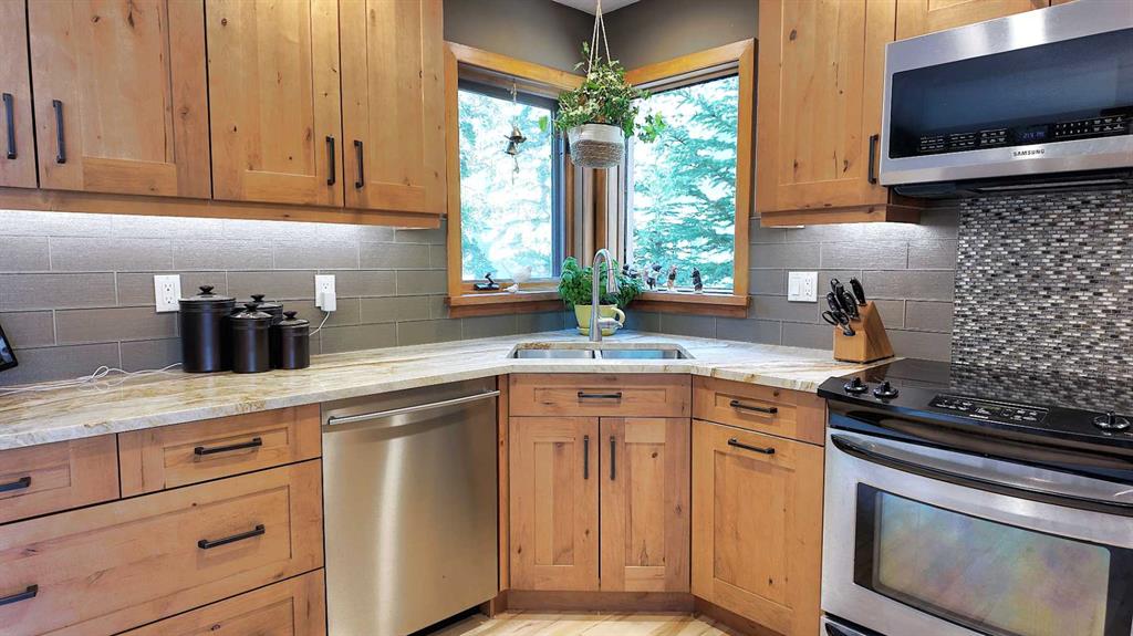 Experience the best of Canmore living in this beautifully maintained bright and sunny 6-bedroom home, perfectly positioned to capture unobstructed views of the Three Sisters. Offering comfort, style, and flexibility, this property features hardwood flooring throughout the main and upper levels, heated floors in select bathrooms, a landscaped backyard with a pond, outdoor firepit, and movable greenhouse, plus a separate-entry 2-bedroom basement suite with its own kitchen, living area, and large storage room.