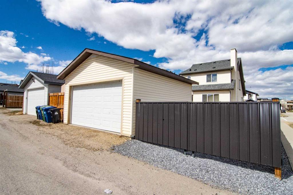 Absolutely immaculate fully finished home in Reunion. Everything is included, all you do is move in! Open kitchen with all appliances, dark wood floors, granite counters, undermount sink, big windows looking out to a beautiful huge south facing yard on a corner lot. Open great room off the kitchen with fireplace and ceiling speakers plus door off the kitchen to a huge new deck. Half bath on this floor as well. All window coverings throughout the home are included. Large tiled front entry plus flex room that could be an office, den or dining room. The upstairs primary suite has a good sized closet plus ensuite bath with soaker tub and stand alone shower. This level includes two more bedrooms a four piece bath and separate laundry area with washer and dryer included. Luxury vinyl flooring throughout the upper level. The lower level is fully developed with a family room, exercise area, 2 more bedrooms with large egress compliant windows and another four piece bathroom. Carpet throughout the lower level. Exterior features a covered front entrance, green space to rear yard with a custom metal gate. The backyard is newly fenced with custom metal gates for your motorhome, trailer, or truck parking. Paved back lane so no mud or dust! Huge new deck off the back door that is the full width of the house with lighting on the railing and a few steps to the stamped concrete patio between the deck and the garage. The deck is south facing and because it is a corner lot it is east facing as well. Six zone “Rainbird” sprinkler system front and back with all the controls in the furnace room. There is a double 20X20 rear garage that is insulated, drywalled and heated. Huge attached 18 ft long storage shed for all your yard equipment etc. The corner lot gives a wide open feeling with lots of additional street parking. Digital locks on front, back and garage entrance door all programed the same so there is no need for keys. Large playground is right across the street , schools within walking distance, shopping, parks and easy access to #2 highway. Great home, Great location! Call your favorite realtor to book your showing today!