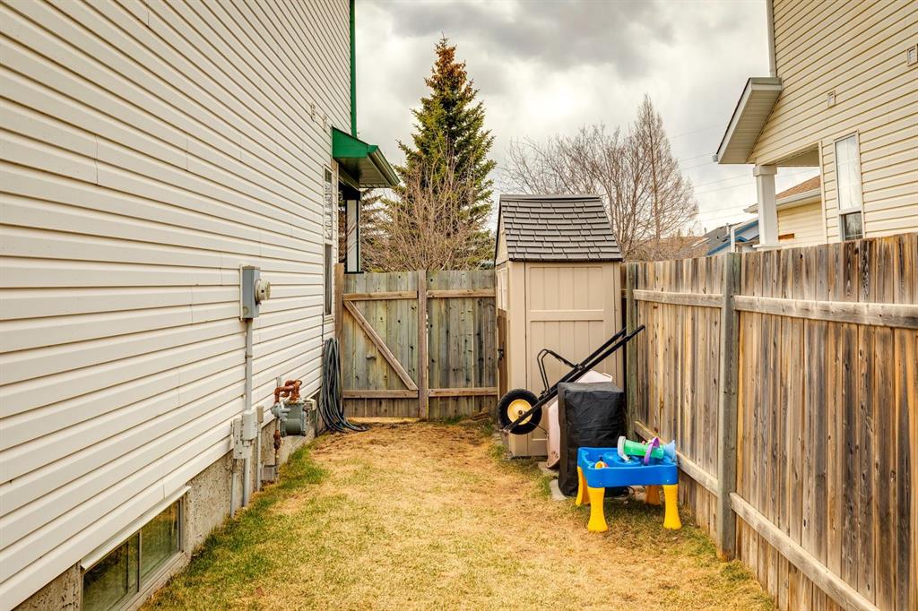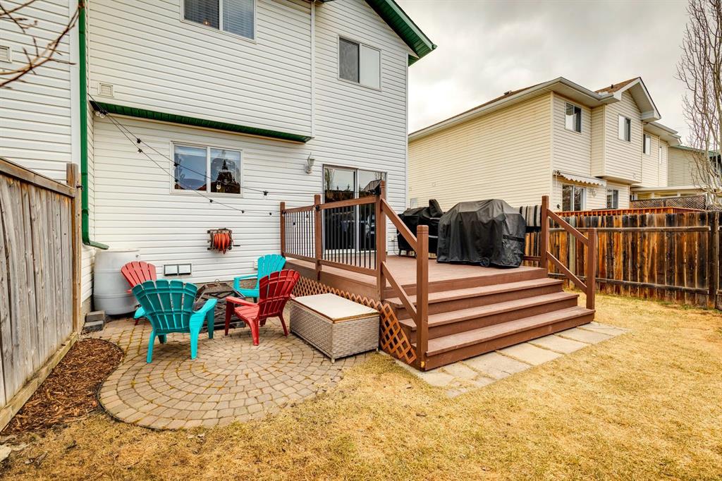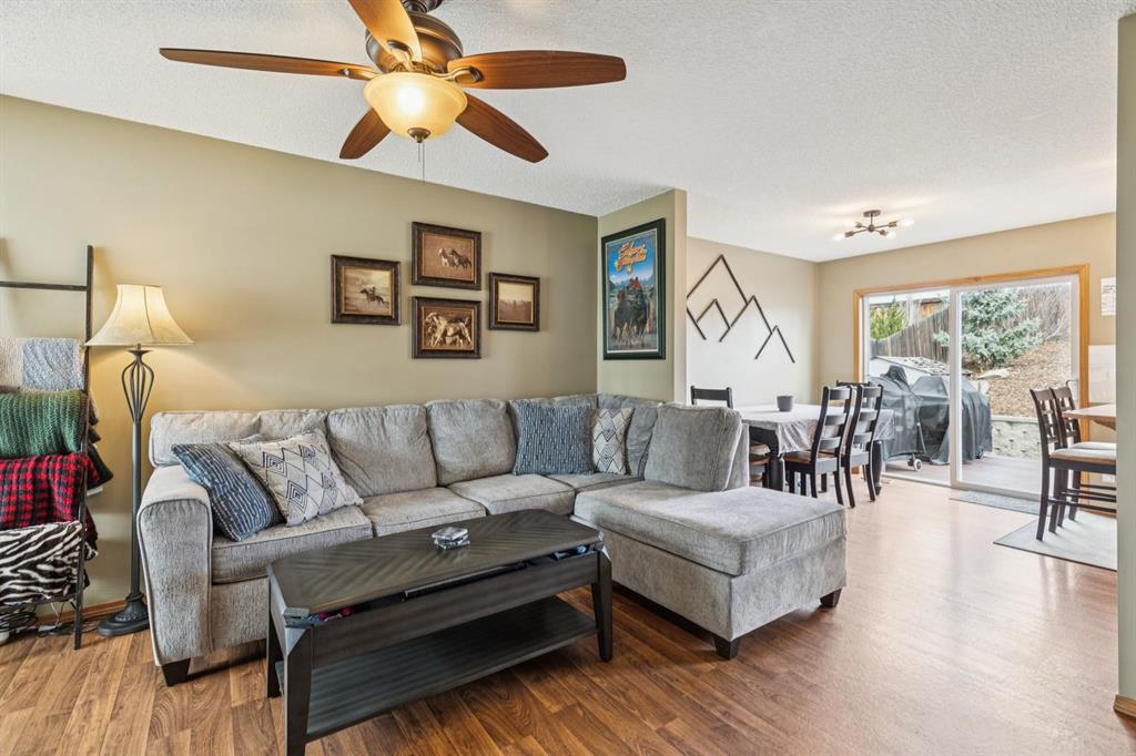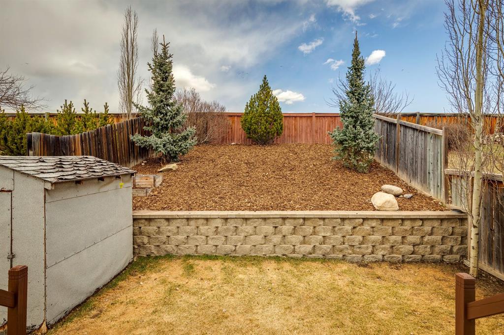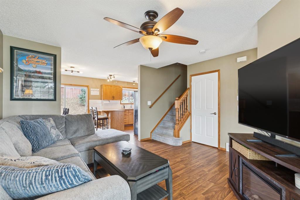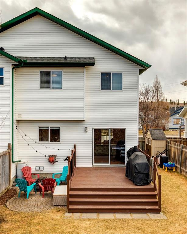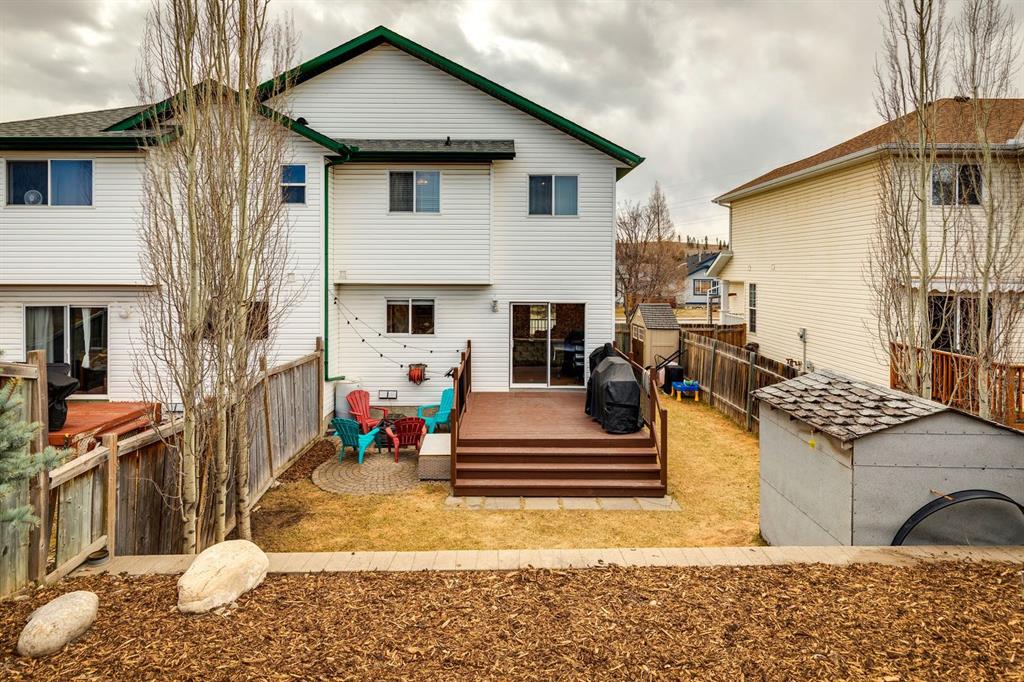 PRIDE OF OWNERSHIP shines in this beautifully maintained semi-detached home in the sought-after community of West Terrace in Cochrane! Ideally located within walking distance to schools, parks, playgrounds, Bow River pathways, and downtown shops and restaurants. Bright and open-concept main floor featuring a functional kitchen with stainless steel appliances, pantry, solid wood cabinetry, and eat-up island. Offering 3 bedrooms up, 1 down, and 2.5 bathrooms—perfect for families, downsizers, or investors. Fully finished basement with rec room and bedroom adds flexible living space. Enjoy the private backyard with a large deck, tiered low-maintenance landscaping, and room for summer fire-pit nights. Single attached garage plus driveway parking for a second vehicle. Recent updates include roof and hot water tank (2022). NO CONDO FEES! Steps to Mitford Park, schools, and pathways, with quick access to Calgary and the mountains. Exceptional value—MUST VIEW!