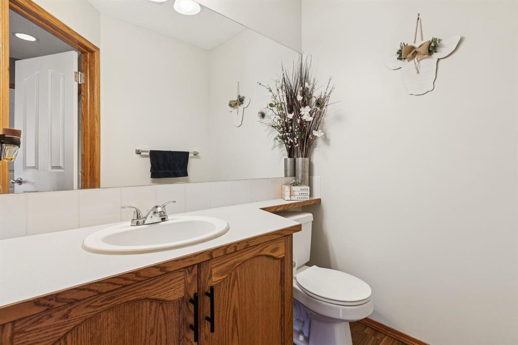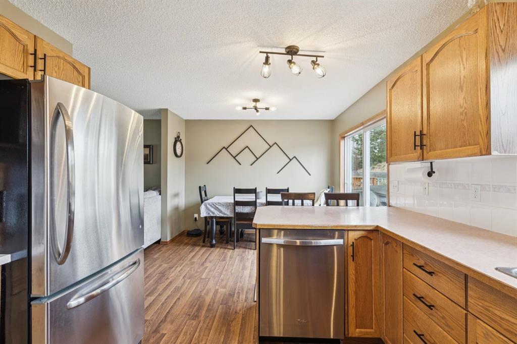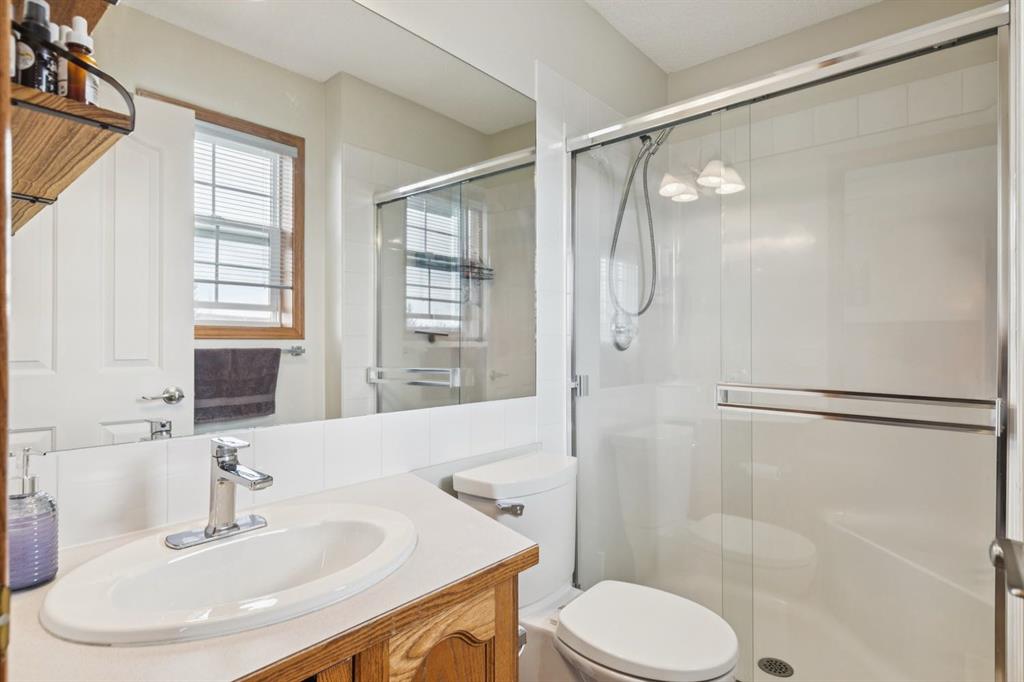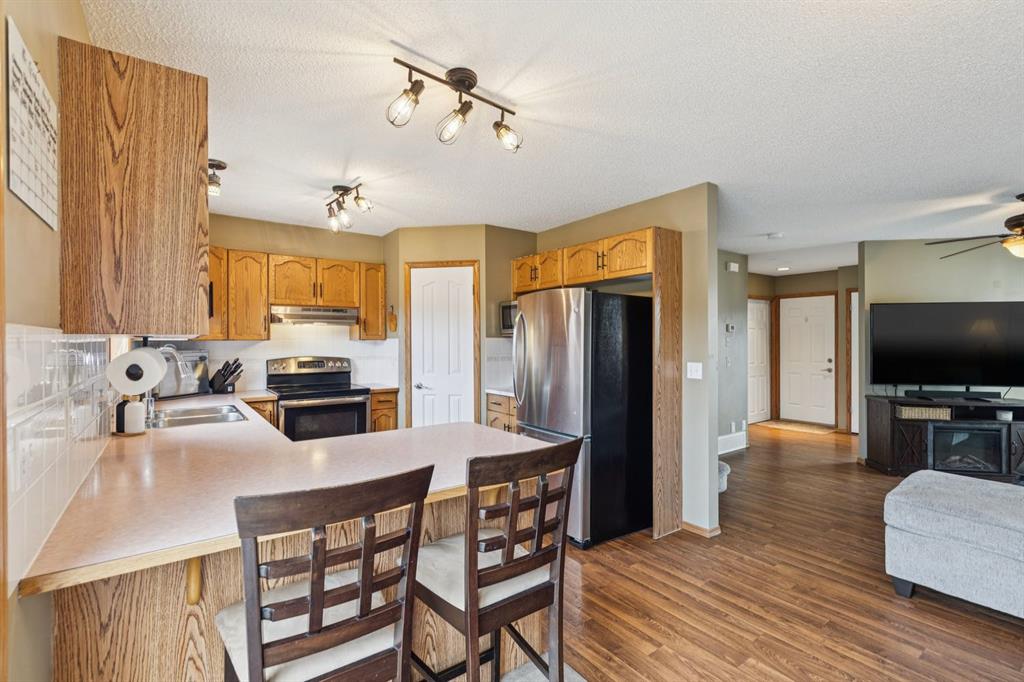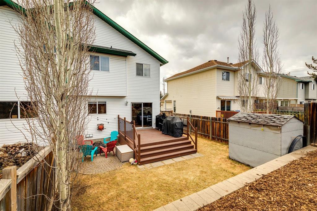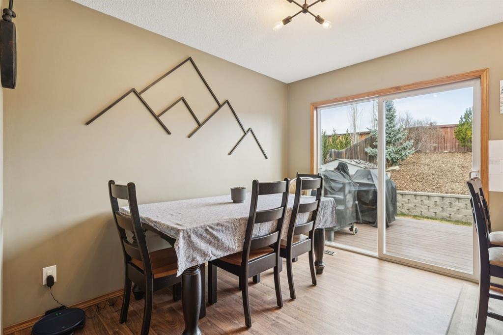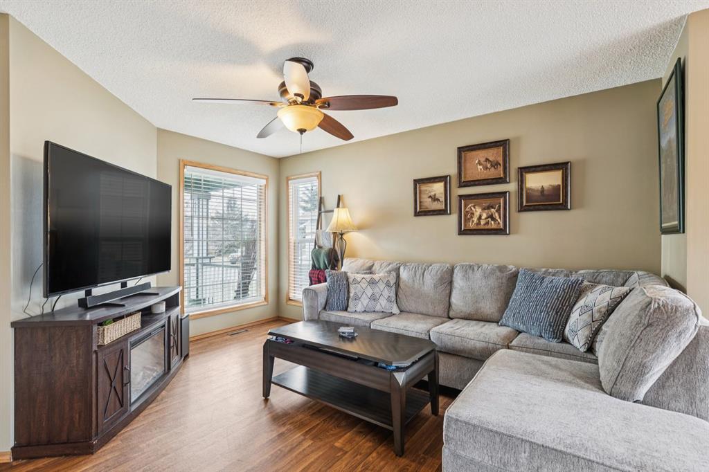 PRIDE OF OWNERSHIP shines in this beautifully maintained semi-detached home in the sought-after community of West Terrace in Cochrane! Ideally located within walking distance to schools, parks, playgrounds, Bow River pathways, and downtown shops and restaurants. Bright and open-concept main floor featuring a functional kitchen with stainless steel appliances, pantry, solid wood cabinetry, and eat-up island. Offering 3 bedrooms up, 1 down, and 2.5 bathrooms—perfect for families, downsizers, or investors. Fully finished basement with rec room and bedroom adds flexible living space. Enjoy the private backyard with a large deck, tiered low-maintenance landscaping, and room for summer fire-pit nights. Single attached garage plus driveway parking for a second vehicle. Recent updates include roof and hot water tank (2022). NO CONDO FEES! Steps to Mitford Park, schools, and pathways, with quick access to Calgary and the mountains. Exceptional value—MUST VIEW!