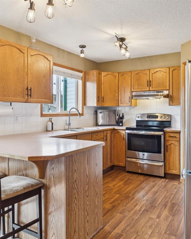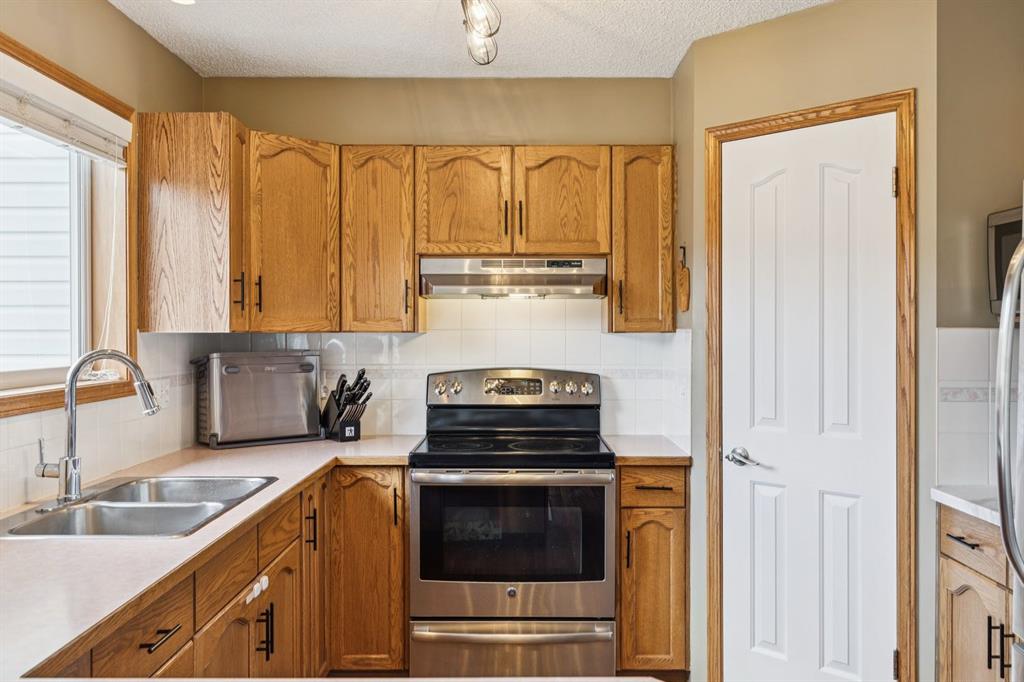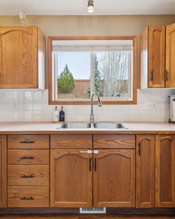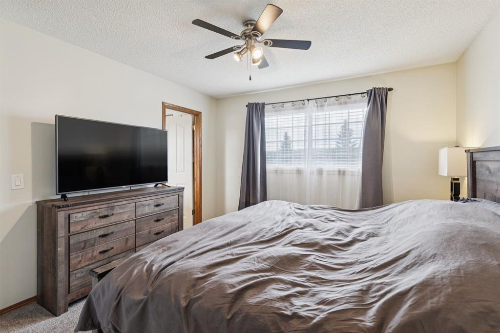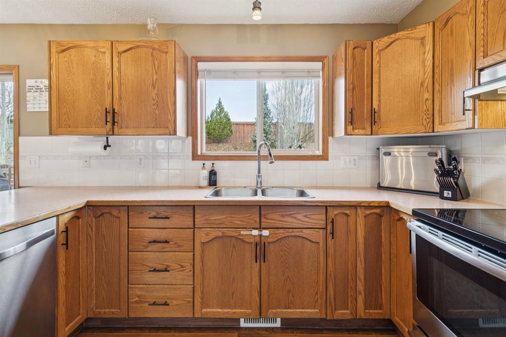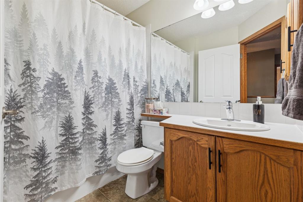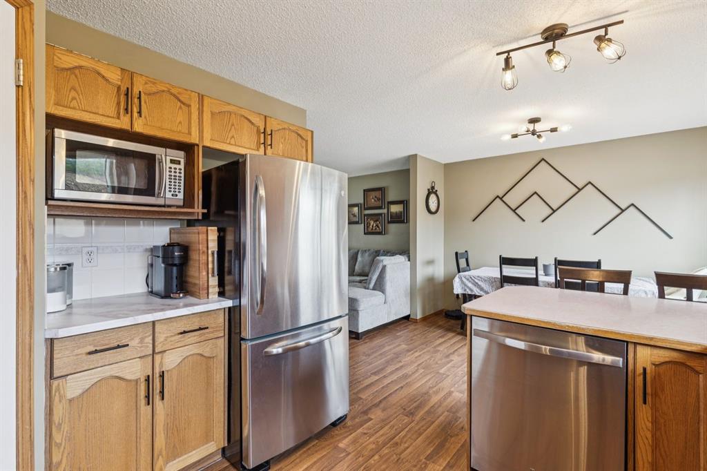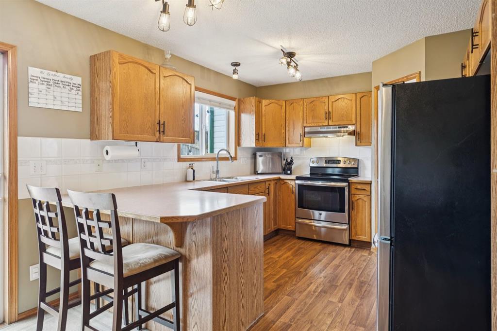 PRIDE OF OWNERSHIP shines in this beautifully maintained semi-detached home in the sought-after community of West Terrace in Cochrane! Ideally located within walking distance to schools, parks, playgrounds, Bow River pathways, and downtown shops and restaurants. Bright and open-concept main floor featuring a functional kitchen with stainless steel appliances, pantry, solid wood cabinetry, and eat-up island. Offering 3 bedrooms up, 1 down, and 2.5 bathrooms—perfect for families, downsizers, or investors. Fully finished basement with rec room and bedroom adds flexible living space. Enjoy the private backyard with a large deck, tiered low-maintenance landscaping, and room for summer fire-pit nights. Single attached garage plus driveway parking for a second vehicle. Recent updates include roof and hot water tank (2022). NO CONDO FEES! Steps to Mitford Park, schools, and pathways, with quick access to Calgary and the mountains. Exceptional value—MUST VIEW!