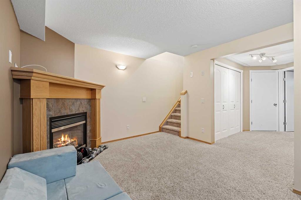 The fully finished basement extends the living space with a large recreation room complete with a gas fireplace, a 4th bedroom with acoustic foam for sound reduction, a 3-piece bathroom, plus laundry and storage.