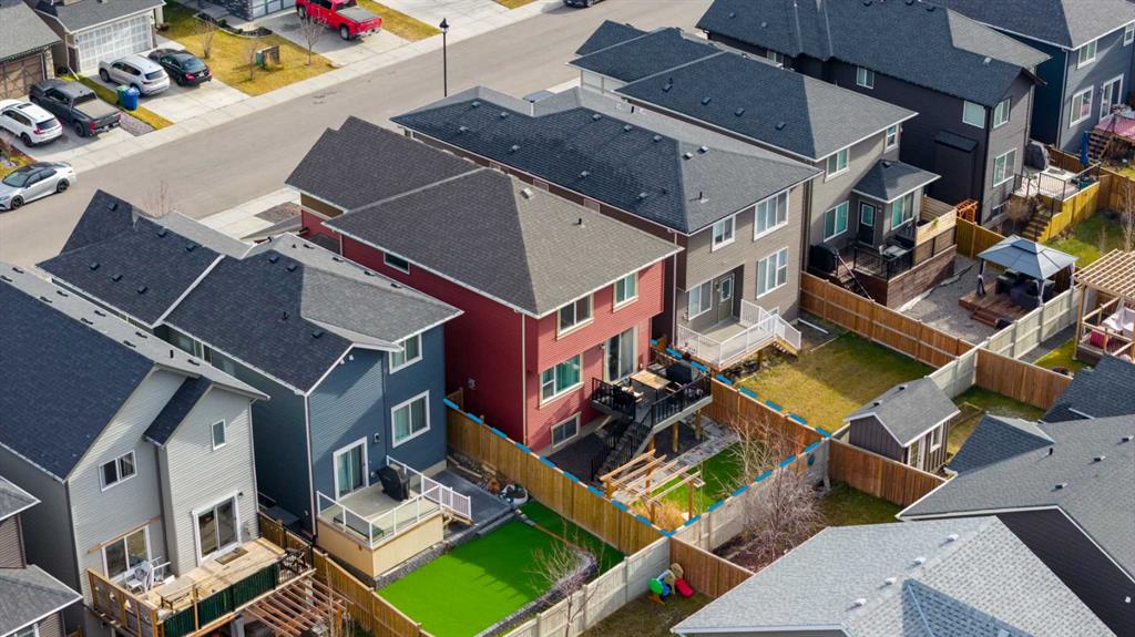 UPGRADED 2-STOREY ON A SUNSHINE LOT W/ BONUS ROOM & ILLEGAL BSMT SUITE IN AIRDRIE’S KINGS HEIGHTS! Sitting on a peaceful Airdrie street, this Homes by Avi two-storey stands out with its’ warm modern Craftsman exterior. Set on a Sunshine Lot, which means bigger basement windows and beautiful natural light on every level. Thoughtful, designer upgrades make daily living feel elegant and pride of ownership has kept the home in tip-top shape! Inside, the open concept main floor is a welcoming living room anchored by a stone-faced gas fireplace, dining area that can comfortably fit a 6-8 person table, and a gourmet chef’s kitchen. The kitchen is home to a gas cooktop with chimney hood, built-in wall oven, full-height mosaic tile, Quartz counters, kitchen island, and corner pantry all set over hardwood floors that run throughout the main level. A versatile MAIN-FLOOR bedroom has its own en-suite 4-piece bath. This extra main floor room is perfect for elderly parents or office space. Upstairs, our first stop is the vaulted bonus room perfect for movie nights, homework, or play. On the opposite end of the upper floor is a large master bedroom with a walk-in closet and a 5-piece bathroom. The ensuite is a spa oasis that features dual sinks, deep soaker tub, and glass shower with seat. Two additional bedrooms share a 4-piece bath, and the convenience of upper-floor laundry keeps chores simple. The basement is home to a 1-bed illegal suite complete with its own separate side entrance, bright living area, sleek kitchen with full-size appliances, a generously-sized bedroom, and a full 4-piece bath. Plus separate washer/dryer and separate electric baseboard heating means completely separate living within each suite. Outside, there is a durable and low maintenance composite deck with glass risers, stepping down to a fully fenced, easy-to-maintain yard with stone paths, a pergola, and synthetic turf for year-round green. An attached double garage and wide driveway handle parking and storage with ease, and the tidy Craftsman curb appeal ties it all together. Set on a quiet street in Kings Heights, this home has quick access to parks, pathways, 2 nearby schools, and everyday shopping at the Yankee Valley Crossing Shopping Plaza, the Kingsview Plaza & Sierra Springs Plaza. Access to the rest of the city and Calgary is easy through several nearby major roadways including Deerfoot Trail, Yankee Valley Blvd & Kingsview Blvd. Jumping in the car: Downtown Calgary is a 23 min drive (29.8KM), Calgary Airport is a 16 min drive (18.8KM), & Banff is a 1 hr 31 min drive (145KM).