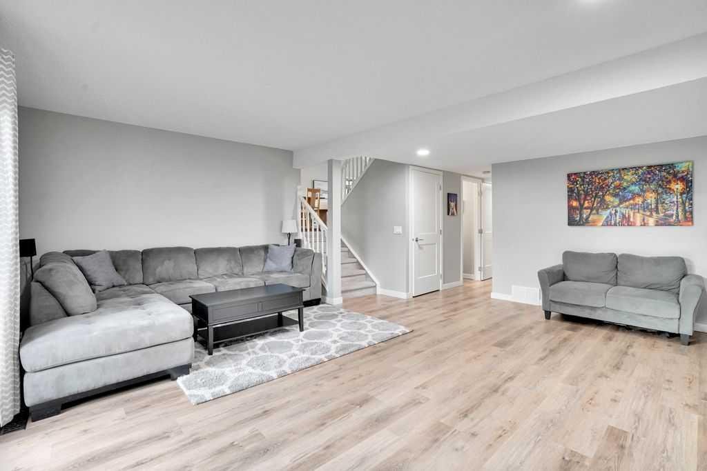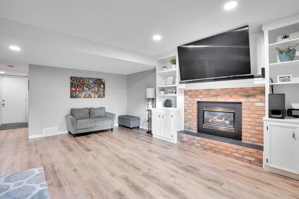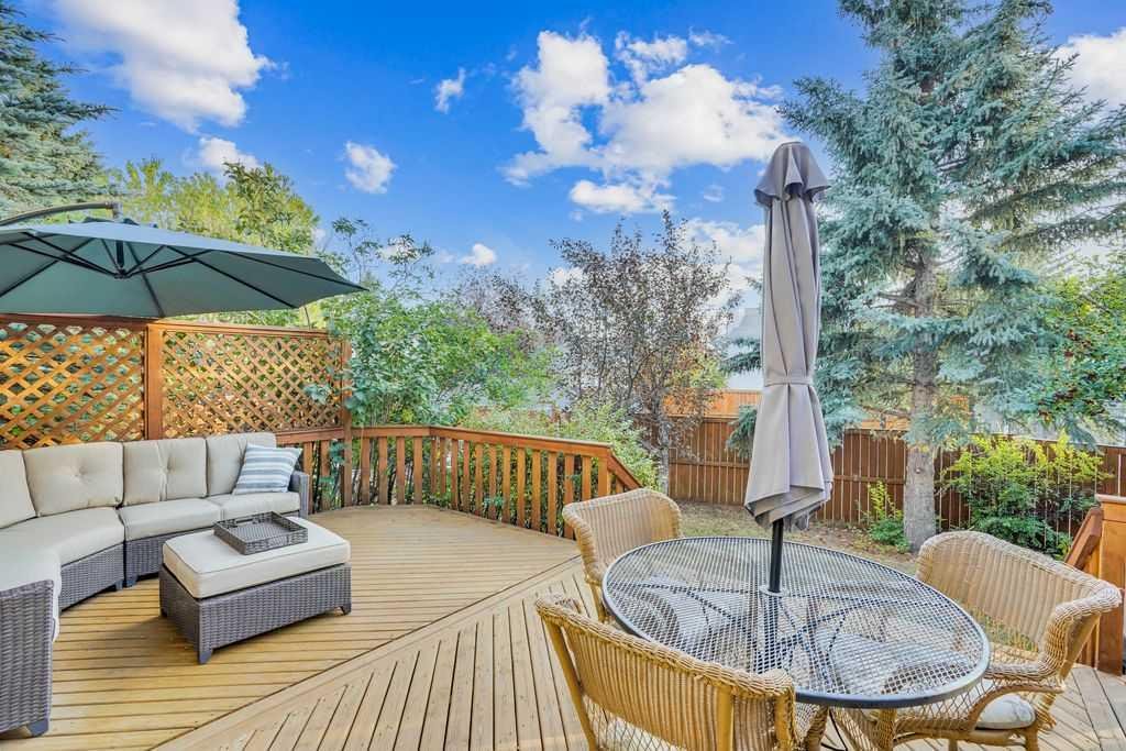 Welcome to this beautifully updated home tucked away on a quiet cul-de-sac in the heart of Woodbine. Sitting on a large southwest-facing pie lot, the property offers incredible privacy with mature trees, a firepit, and a two-tier deck complete with a gas BBQ line—perfect for entertaining and family gatherings. Inside, you’ll love the vaulted ceilings and open design that highlight the renovated kitchen with quartz countertops, built-in cabinetry, and updated appliances. The main living areas flow seamlessly into a formal dining room, living room, and a cozy family room with a gas fireplace and built-in accents that opens to the backyard. Upstairs features a spacious primary retreat with a spa-like ensuite, two additional bedrooms, and another fully updated bathroom. The main floor includes a convenient den/office and mudroom entry from the garage, while the finished basement offers a large rec room, an additional bedroom, and plenty of flexible living space. With modern updates throughout, and walking distance to schools, playgrounds, Fish Creek Park, and nearby shopping, this home is truly move-in ready and a must-see.