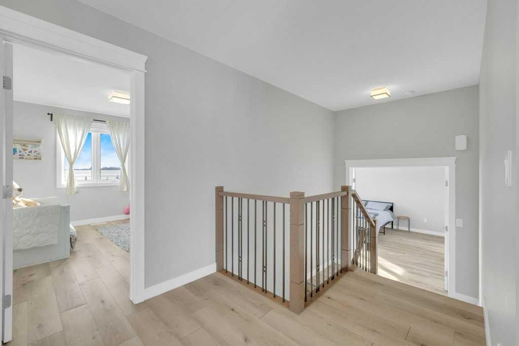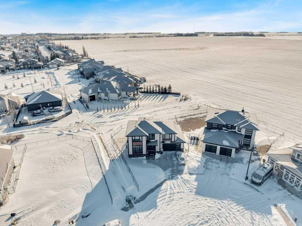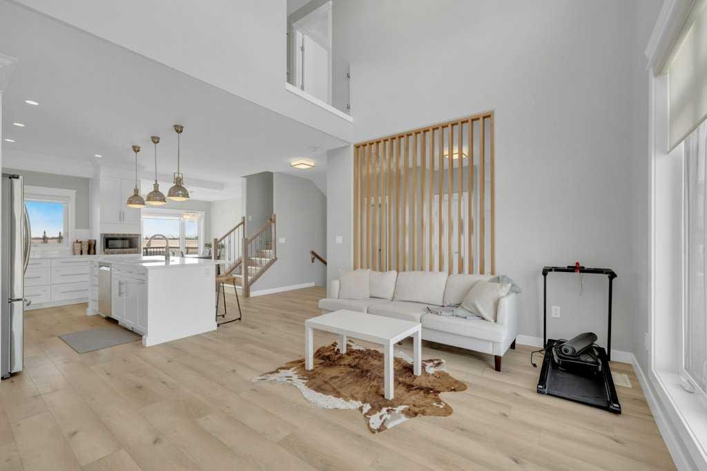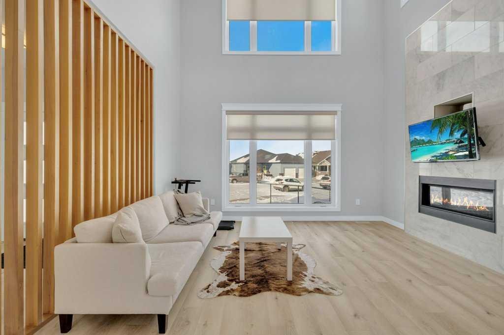 Welcome to this beautifully designed two-storey home tucked away in a quiet cul-de-sac in The Highlands. Offering a bright, open floor plan with soaring ceilings and expansive windows, this home is filled with natural light and thoughtful architectural detail throughout. The main level showcases a striking tiled feature wall with fireplace and a custom wood slat accent wall that creates a warm, modern first impression. The kitchen is designed to impress with custom cabinetry, a large island with quartz countertops and an inviting eating area perfect for family gatherings or entertaining. A convenient 2 pce bathroom is located on the main floor, along with a functional mudroom/laundry room that provides direct access to the attached oversized heated garage — offering ample space to accommodate multiple vehicles and additional storage. Upstairs you’ll find three spacious bedrooms, including a stunning primary retreat. The primary suite features a custom built in walk in closet, double sinks, a dedicated makeup counter, abundant storage in the vanity, a glass shower and a freestanding soaker tub — creating a true spa like ensuite experience. An additional full bathroom serves the remaining bedrooms. The fully developed basement expands your living space with two additional bedrooms, another full bathroom, a spacious family room and a versatile flex room ideal for a home office, den or toy room. A custom wood feature wall with TV mount adds a stylish focal point, making the lower level perfect for movie nights or relaxing with family. Outside, enjoy a landscaped and fully fenced yard with gorgeous views of the local fields. Located close to numerous walking paths, shopping and schools, this home offers the perfect blend of privacy, space and convenience in a sought-after neighbourhood. Call today to book a tour!!