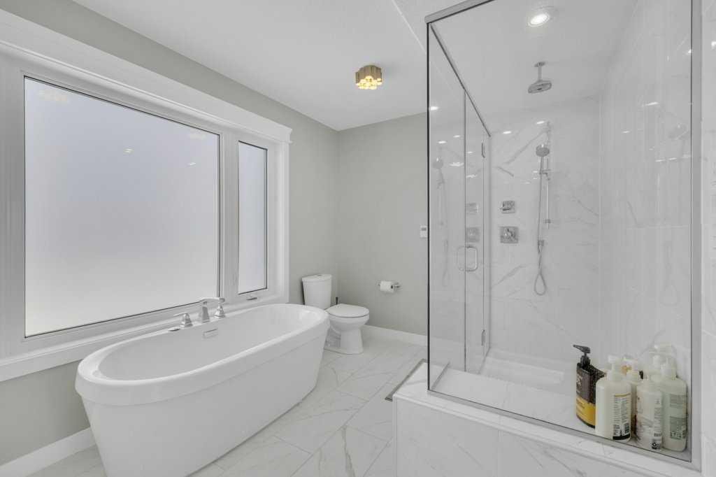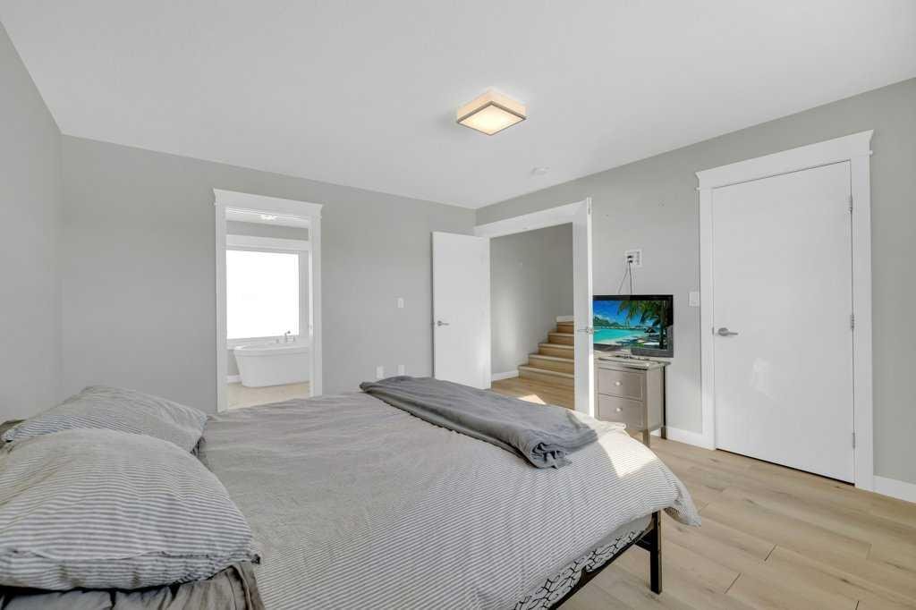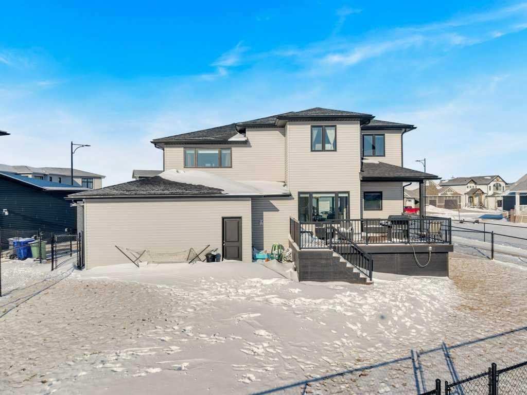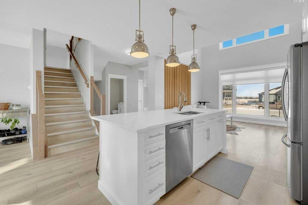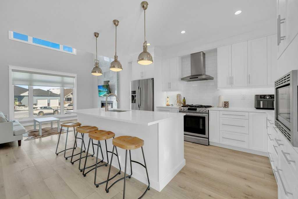 Welcome to this beautifully designed two-storey home tucked away in a quiet cul-de-sac in The Highlands. Offering a bright, open floor plan with soaring ceilings and expansive windows, this home is filled with natural light and thoughtful architectural detail throughout. The main level showcases a striking tiled feature wall with fireplace and a custom wood slat accent wall that creates a warm, modern first impression. The kitchen is designed to impress with custom cabinetry, a large island with quartz countertops and an inviting eating area perfect for family gatherings or entertaining. A convenient 2 pce bathroom is located on the main floor, along with a functional mudroom/laundry room that provides direct access to the attached oversized heated garage — offering ample space to accommodate multiple vehicles and additional storage. Upstairs you’ll find three spacious bedrooms, including a stunning primary retreat. The primary suite features a custom built in walk in closet, double sinks, a dedicated makeup counter, abundant storage in the vanity, a glass shower and a freestanding soaker tub — creating a true spa like ensuite experience. An additional full bathroom serves the remaining bedrooms. The fully developed basement expands your living space with two additional bedrooms, another full bathroom, a spacious family room and a versatile flex room ideal for a home office, den or toy room. A custom wood feature wall with TV mount adds a stylish focal point, making the lower level perfect for movie nights or relaxing with family. Outside, enjoy a landscaped and fully fenced yard with gorgeous views of the local fields. Located close to numerous walking paths, shopping and schools, this home offers the perfect blend of privacy, space and convenience in a sought-after neighbourhood. Call today to book a tour!!