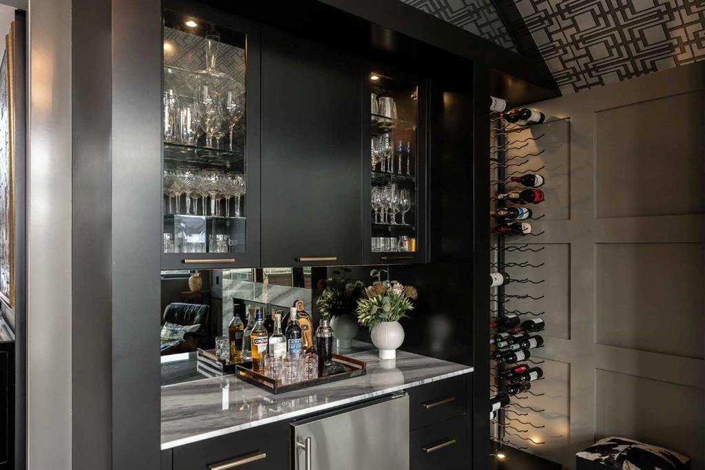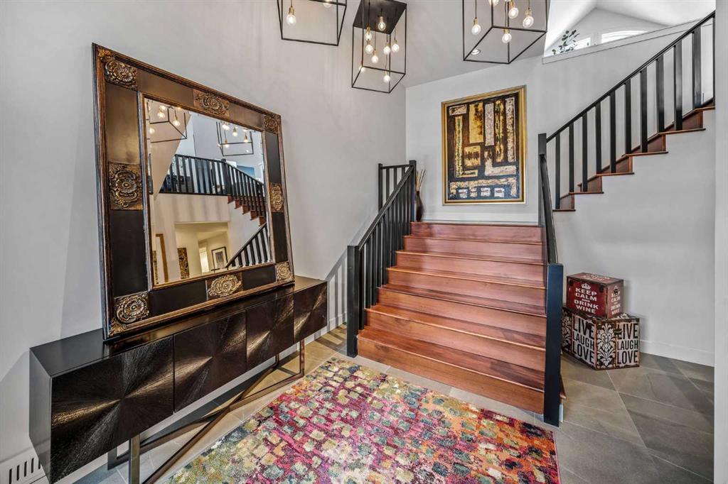 Situated on a quiet street in sought-after Spring Willow Estates, this exquisitely renovated walk-up bungalow sits on a beautifully landscaped 0.24-acre lot, offering gorgeous views from the front rooms and a private backyard retreat. Soaring vaulted ceilings and expansive walls of windows flood the main level with natural light, creating an airy and sophisticated ambiance throughout. Extensively renovated in 2018, this home blends modern design and finishes with the charm of a mature community. The grand front entry features impressive ceiling height, designer lighting, and a striking feature staircase leading to the main living area. The chef’s island kitchen offers a gas cooktop, double wall ovens, a 42” built-in refrigerator, pantry, and a custom mirrored hood fan. Vaulted ceilings create a remarkable great room with 12-foot windows overlooking the backyard, anchored by a warm wood-burning fireplace and opening to a covered outdoor room with its own fireplace—perfect for everyday living and entertaining. An adjacent lounge is equally stunning, featuring another stunning gas fireplace, a full bar with glass cabinetry and marble counters, vaulted wallpapered ceilings, and a wall of sliding doors and windows that open to the west-facing front deck with views—an ideal space for relaxing or hosting guests. An additional bright and versatile flex room functions beautifully as a home office, wellness studio, or playroom. The primary suite serves as a serene sanctuary, complete with a built-in walk-in closet and spa-inspired five-piece ensuite featuring an oversized glass shower and soaker tub. Thoughtfully designed by Paul Lavoie Interior Design, the home showcases exceptional attention to detail, including wallpapered ceilings, custom made lighting, and carefully curated designer lighting throughout. The fully developed lower level offers two spacious bedrooms with walk-in closets, a luxurious five-piece bathroom with a steam shower and soaker tub, and a generous family room—perfect for guests, teenagers, or extended family. Completing the home is an oversized heated triple-car garage featuring epoxy flooring and custom built-in storage. Additional features include central air conditioning, heated tile floors on the lower level, custom drapery, and power blinds. The large lot is naturally landscaped with mature trees and low-maintenance perennials, and features an oversized deck ideal for dining and lounging, along with a stone patio designed for a fire pit—all easily accessible from the main floor. Set on a peaceful, family-friendly street surrounded by walking trails and welcoming neighbours, this exceptional property offers a rare blend of luxury, design, and privacy. Located near top-rated schools, Aspen Landing Shopping Centre, Westside Recreation Centre, and with convenient access to downtown Calgary and the mountains, this home is truly one of a kind. **See virtual tour
