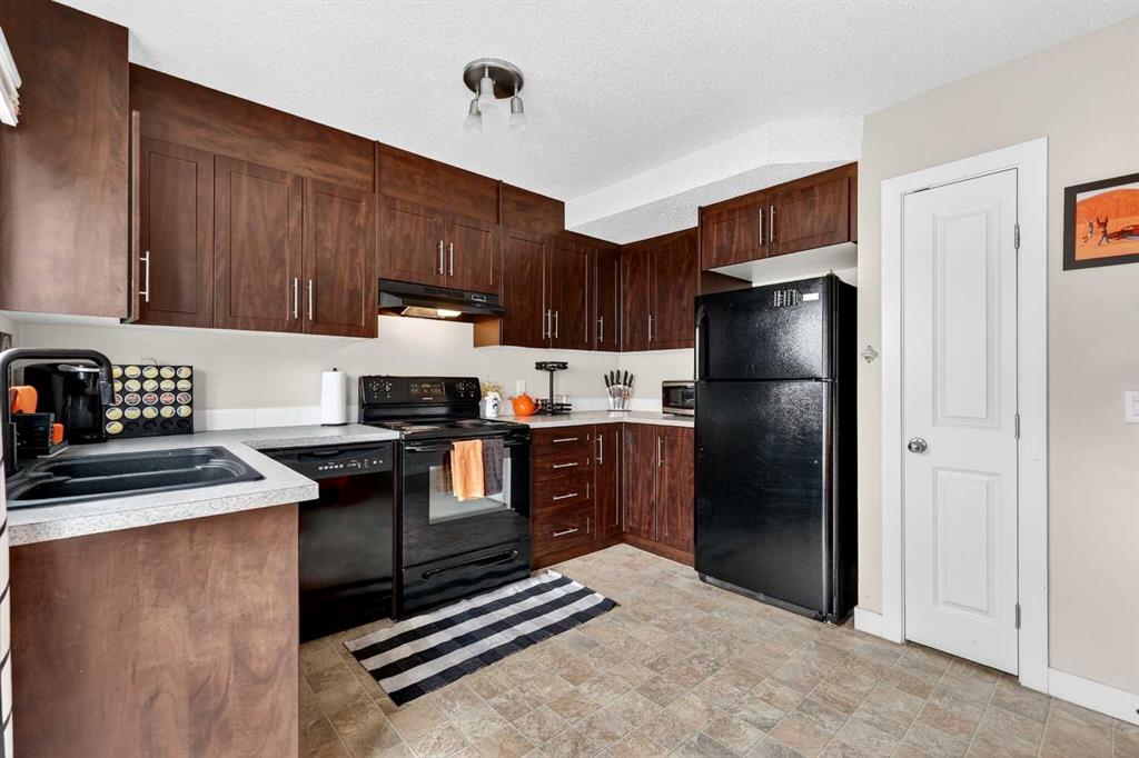 **COME JOIN US AT OUR OPEN HOUSE THIS SATURDAY APRIL 18TH FROM 11AM-2PM**Affordable opportunity in the heart of Deer Run! Welcome to this charming and well-cared-for 2-bedroom, 1.5-bath townhouse offering a perfect blend of comfort, functionality, and value. When you walk in, you’re greeted by a bright and spacious living room filled with natural light from large windows, creating a warm and inviting atmosphere. The renovated kitchen features rich mocha cabinetry extending to the ceiling, paired with sleek black appliances—including an electric stove, built-in dishwasher, fridge, and hood fan—complemented by a matching black sink for a clean, cohesive look. Upstairs, you’ll find two generously sized bedrooms, including a primary that easily fits a king-sized bed and offers ample closet space. The second bedroom includes a walk-in closet and works perfectly as a home office or guest room. A full 4-piece bathroom completes the upper level. Step outside to your private, fenced backyard—ideal for relaxing, entertaining, or letting pets enjoy the space. The patio area is ready for your outdoor setup, while the low-maintenance yard keeps things easy. An assigned parking stall is just steps away, with additional parking conveniently located nearby. The unfinished basement provides excellent potential for future development—whether you envision a rec room, home office, or extra storage space. Located in the desirable community of Deer Ridge, you’ll love the convenience and lifestyle this area offers. Enjoy quick access to shopping, restaurants, schools, parks, and playgrounds—all within walking distance. Plus, you’re just minutes from Fish Creek Provincial Park, one of Calgary’s largest and most beautiful green spaces, perfect for walking, biking, and year-round outdoor activities. Whether you’re a first-time buyer, investor, or looking to downsize, this is an incredible opportunity to own in a well-established, family-friendly neighbourhood. Don’t miss your chance—this one is a must-see!