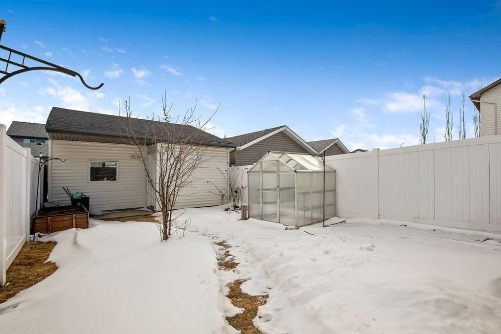 Experience small-town style living in McKenzie Towne. This two-level semi-detached home is located on a quiet cul-de-sac in the desirable Elgin Village area. The home has seen several updates, including freshly repainted interiors on both levels, updated baseboards and window casings, and new hardwood flooring and carpet. The kitchen features stainless steel appliances and connects to a bright dining area with pantry storage and direct access to the backyard. Step outside to a spacious 12′ x 17′ deck with pergola, creating a comfortable space for relaxing or entertaining. The yard includes a greenhouse and raised garden boxes for those who enjoy gardening. The backyard is fully enclosed with vinyl fencing and offers access to an oversized double detached garage with a useful bump-out for additional storage or workspace, plus a poured concrete pad extending to the fence line. Upstairs you will find two generously sized primary bedrooms, each offering a layout that accommodates ensuite-style living. The basement is unfinished, providing an open canvas for future development to suit your needs. Additional features include central air conditioning for summer comfort and shingles replaced approximately six years ago. The exterior of the home is enhanced with programmable Gemstone lighting. Located close to schools, playgrounds, shopping, and walking paths, this property offers convenient access to all the amenities that make McKenzie Towne a popular and family-friendly Calgary community.