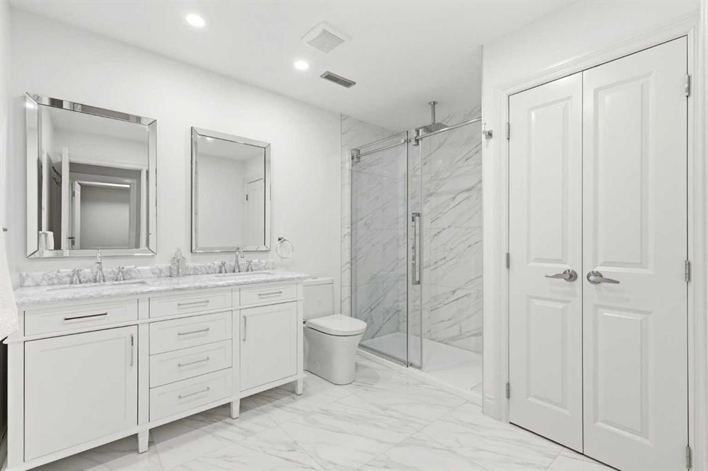 Practical luxury continues with a detached double garage that is fully drywalled and heated—ideal for vehicles, hobbies, or storage. With four bedrooms, 3.5 bathrooms, and a premier Quarry Park location near parks, cafés, restaurants, and pathways, this home delivers refined, low-maintenance living in one of Calgary’s most vibrant communities.