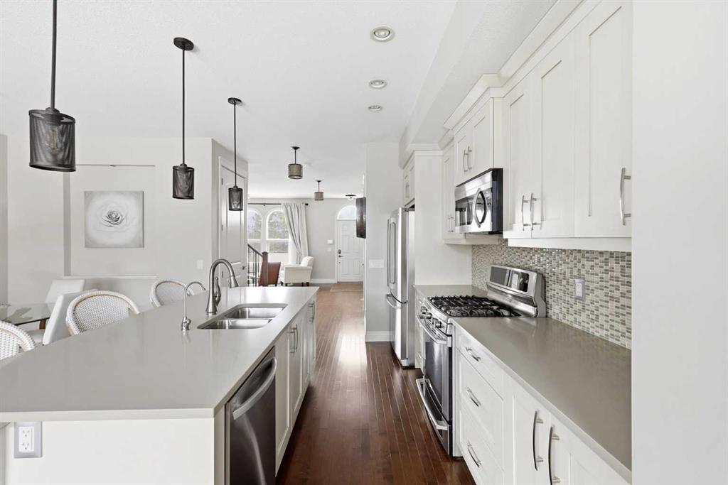Experience the best of Quarry Park in this former show home, perfectly situated on a quiet boulevard just one block from the scenic Bow River pathways. With over 2,300 sq ft of thoughtfully finished living space up and down, this striking two-storey townhome offers a modern, open layout designed for both everyday living and entertaining.