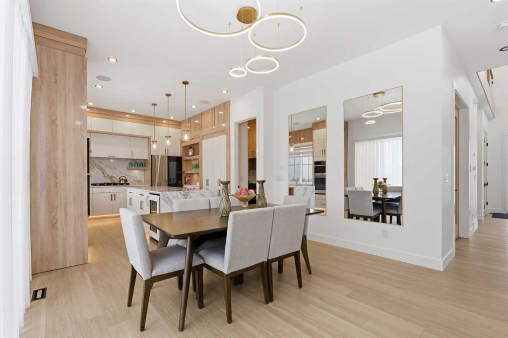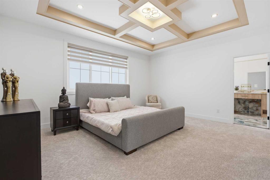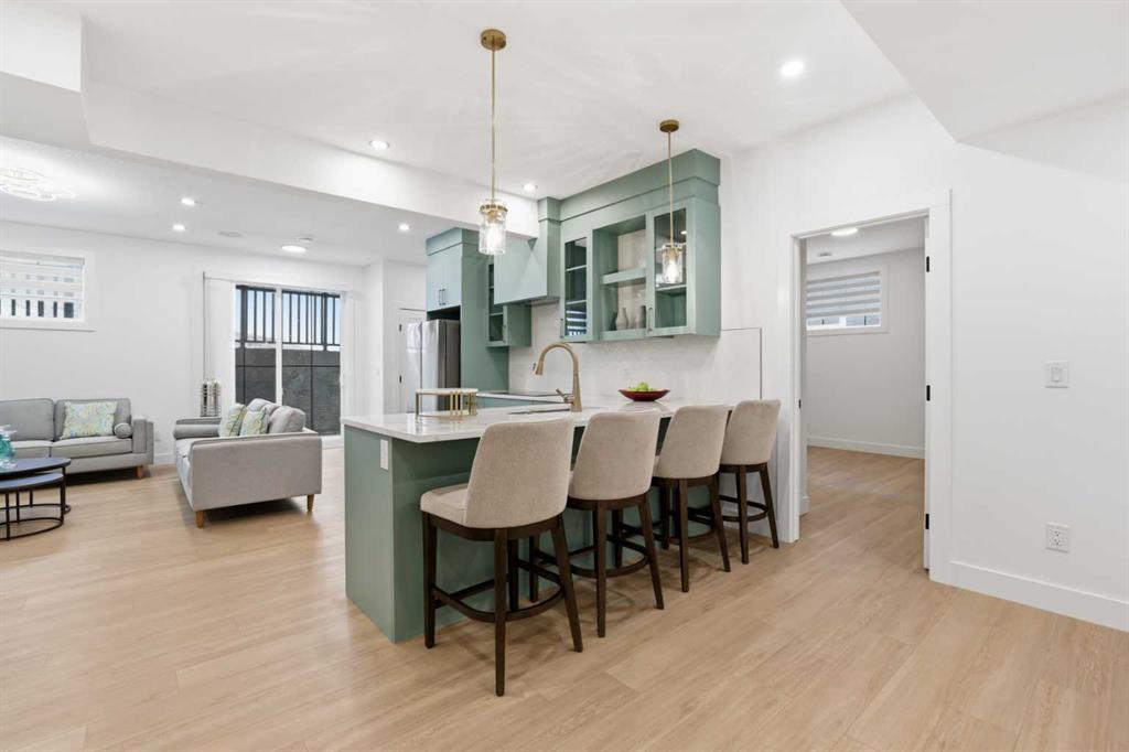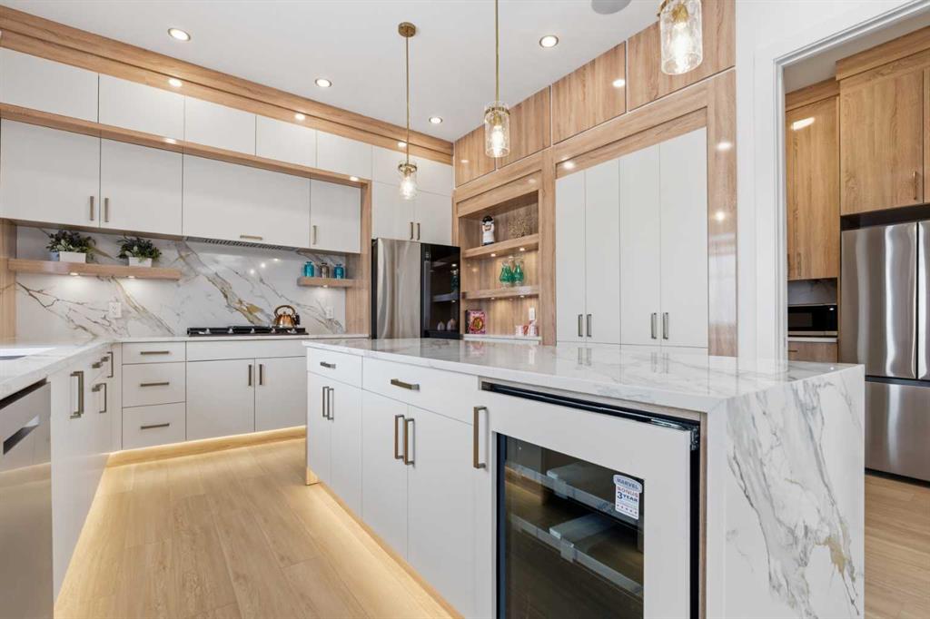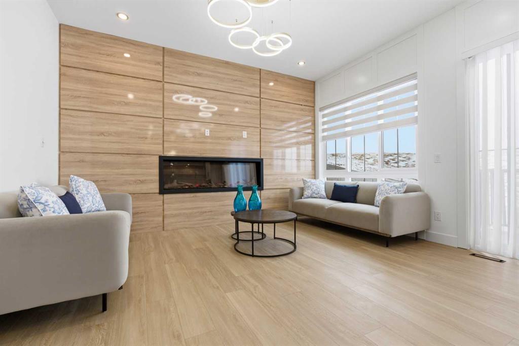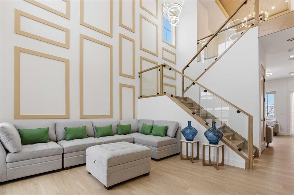 Backing onto greenspace with direct access to biking and walking trails, this expansive custom built 5+3 bedroom home with a FULLY DEVELOPED WALK OUT BASEMENT offers over 4,600 sq ft of beautifully designed living space. The main level features luxury vinyl plank flooring, soaring ceilings, and stylish lighting throughout. A dramatic front living room with a towering ceiling flows into a welcoming family room, highlighted by a floor to ceiling feature wall with fireplace. This open concept continues into the spacious dining area and the stunning kitchen, complete with a waterfall island/eating bar, abundant cabinetry, a high end appliance package, and a fully equipped spice kitchen/butler’s pantry. A generous main floor bedroom with its own private 3 piece ensuite is ideal for guests or multi generational living. An office tucked quietly down the hall provides an excellent work from home space, and a 2 piece powder room completes the level. Upstairs, a central bonus room anchors the second floor, which hosts four additional bedrooms—two with private ensuites—along with a 3 piece Jack & Jill bath and a convenient laundry room. The primary retreat impresses with a dramatic tray ceiling, a walk in closet, and a luxurious 5 piece ensuite featuring dual sinks, a relaxing soaker tub, and a separate shower. The walk out basement is perfectly suited for extended family living, offering its own spacious living room with a floor to ceiling feature fireplace and built ins, a dining area, and a well appointed kitchen with quartz countertops, an eating bar, ample cabinetry, and stainless steel appliances. Three sizeable bedrooms (including one with a 4 piece ensuite), a 4 piece main bath, and private laundry facilities complete this level. Additional highlights include central air conditioning, Smart Home features, and built in speakers. Outdoors, enjoy a back deck overlooking the greenspace, a covered patio, and effortless parking with a triple attached garage. This exceptional property is close to schools, shopping, parks, and public transit, with quick access to Country Hills Blvd and Stoney Trail—offering convenience, space, and a rare connection to nature.