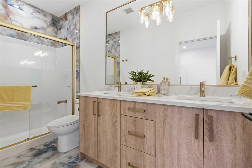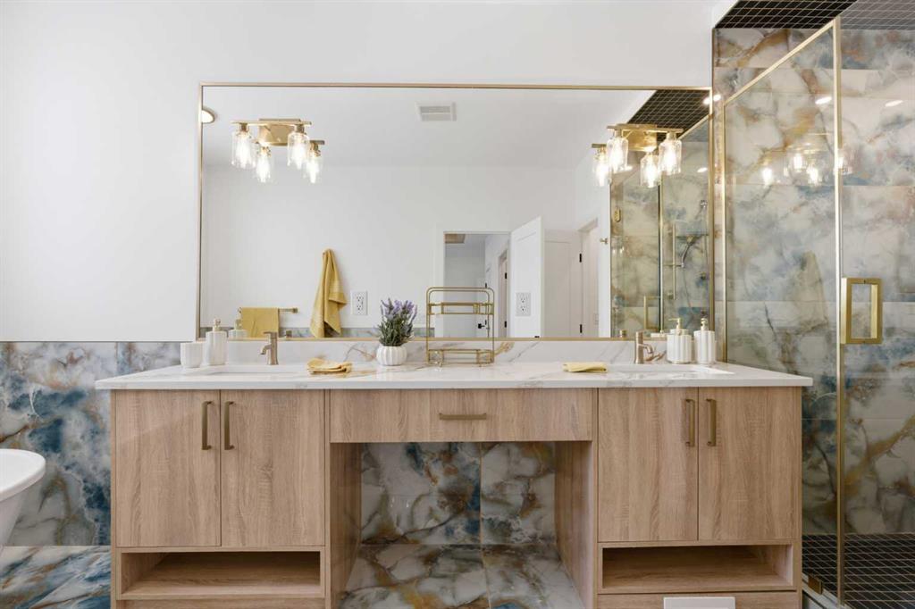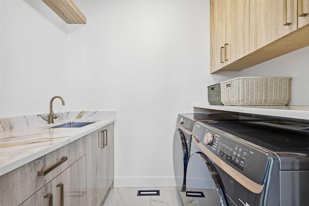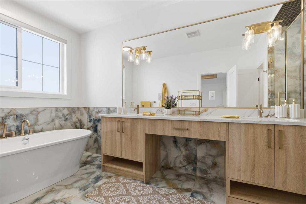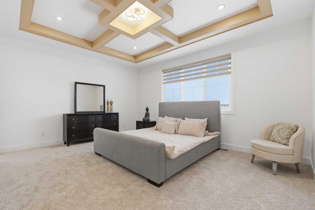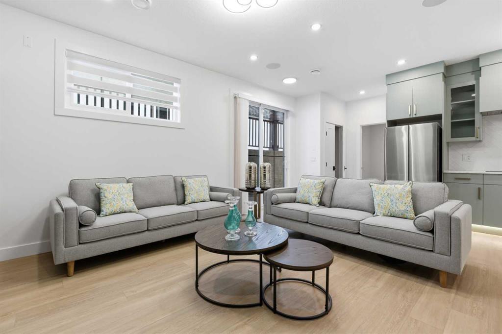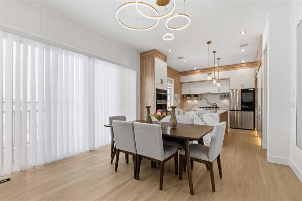 Backing onto greenspace with direct access to biking and walking trails, this expansive custom built 5+3 bedroom home with a FULLY DEVELOPED WALK OUT BASEMENT offers over 4,600 sq ft of beautifully designed living space. The main level features luxury vinyl plank flooring, soaring ceilings, and stylish lighting throughout. A dramatic front living room with a towering ceiling flows into a welcoming family room, highlighted by a floor to ceiling feature wall with fireplace. This open concept continues into the spacious dining area and the stunning kitchen, complete with a waterfall island/eating bar, abundant cabinetry, a high end appliance package, and a fully equipped spice kitchen/butler’s pantry. A generous main floor bedroom with its own private 3 piece ensuite is ideal for guests or multi generational living. An office tucked quietly down the hall provides an excellent work from home space, and a 2 piece powder room completes the level. Upstairs, a central bonus room anchors the second floor, which hosts four additional bedrooms—two with private ensuites—along with a 3 piece Jack & Jill bath and a convenient laundry room. The primary retreat impresses with a dramatic tray ceiling, a walk in closet, and a luxurious 5 piece ensuite featuring dual sinks, a relaxing soaker tub, and a separate shower. The walk out basement is perfectly suited for extended family living, offering its own spacious living room with a floor to ceiling feature fireplace and built ins, a dining area, and a well appointed kitchen with quartz countertops, an eating bar, ample cabinetry, and stainless steel appliances. Three sizeable bedrooms (including one with a 4 piece ensuite), a 4 piece main bath, and private laundry facilities complete this level. Additional highlights include central air conditioning, Smart Home features, and built in speakers. Outdoors, enjoy a back deck overlooking the greenspace, a covered patio, and effortless parking with a triple attached garage. This exceptional property is close to schools, shopping, parks, and public transit, with quick access to Country Hills Blvd and Stoney Trail—offering convenience, space, and a rare connection to nature.