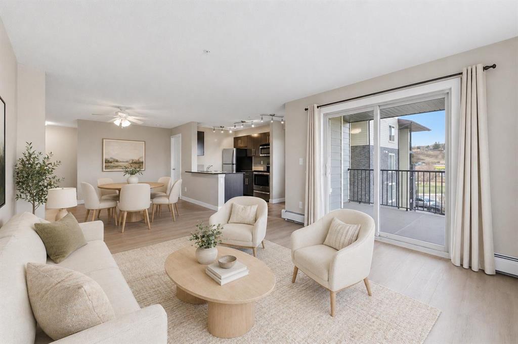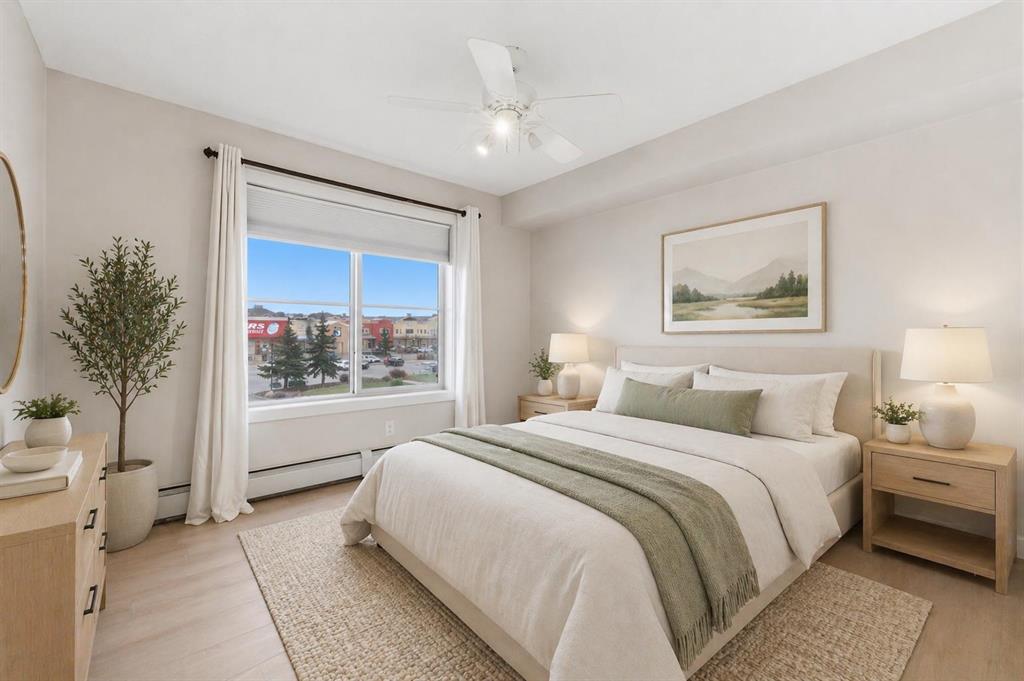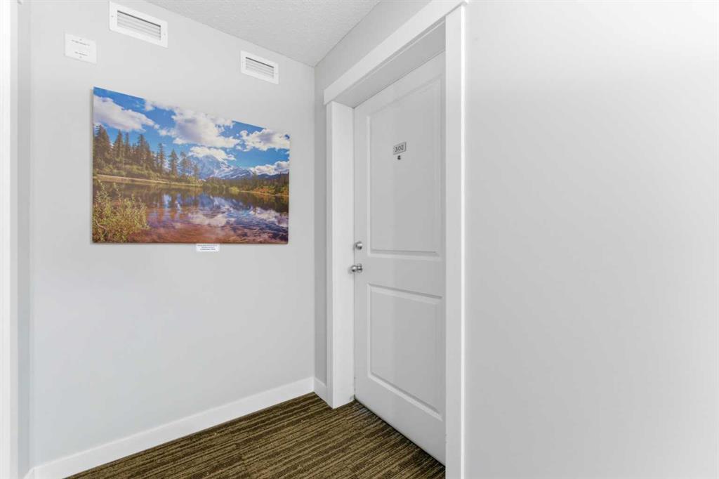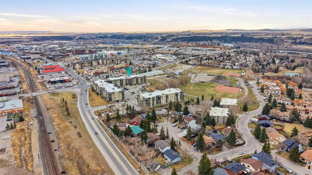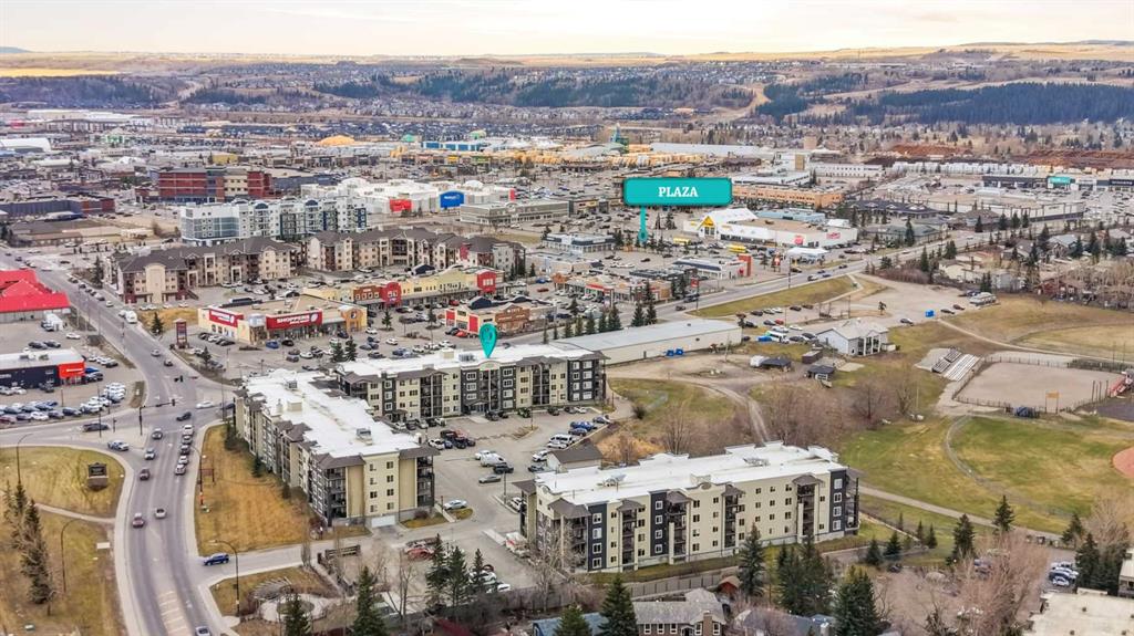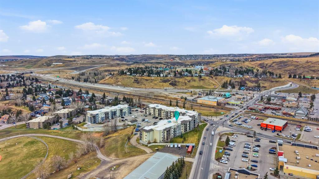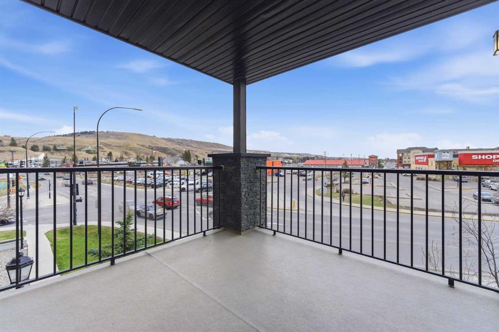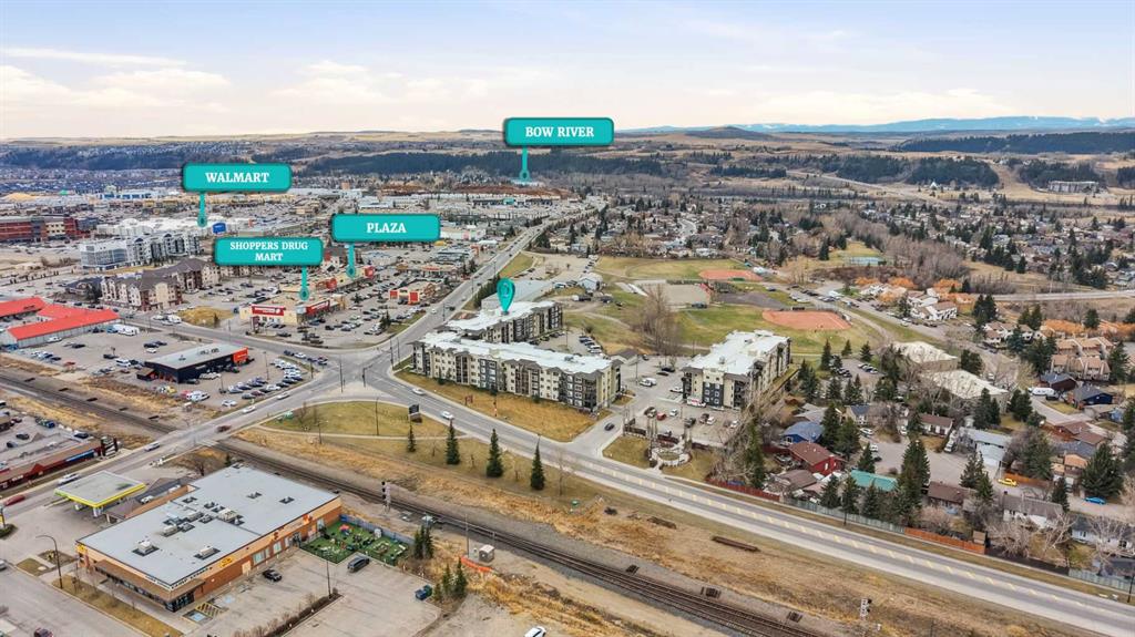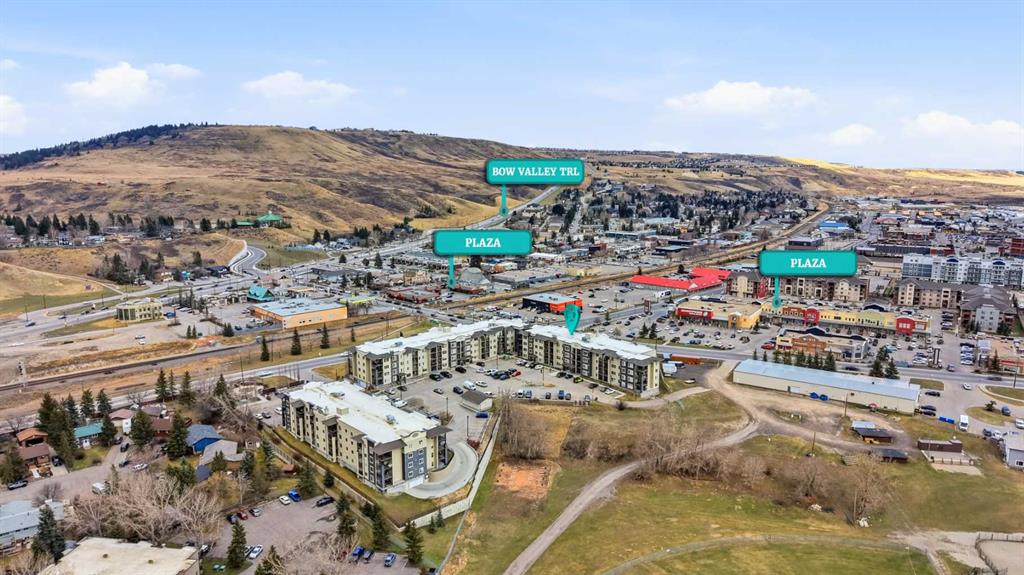 Welcome to Glenmore Landing! Experience the best of both worlds in this stunning third-floor corner unit with 2 beds, 2 baths + open office, nestled in the heart of Cochrane. This meticulously maintained residence offers an unparalleled lifestyle for those who crave the vibrant energy of a downtown core while cherishing the serene beauty and proximity of the Canadian Rockies. Positioned at the quiet end of the hallway for maximum privacy and minimal foot traffic, this end unit benefits from additional natural light, enhanced airflow, and a more spacious balcony—perfect for enjoying fresh mountain air. The suite is ideally situated for effortless living with both elevator access and a convenient stairwell nearby. Step outside your door and find yourself within two to three blocks of Cochrane’s historic Main Street, where you can soak in the atmosphere at a local western saloon, hit the fitness club, or run daily errands at grocery stores, pharmacies, restaurants, and banks. For the outdoor enthusiast, the location is a dream; one block west, meandering walking paths lead toward the river, while the complex itself backs onto the local rodeo grounds and park land, hosting spirited community events throughout the year. When the mountains call, a scenic 40-minute drive delivers you to the world-class peaks of Canmore, with Ghost Lake only 20 minutes away for boating and camping. Upon entering the suite, you are greeted by a functional foyer featuring a large closet and an expansive storage room with full-sized washer/dryer. To your left, a generous open area provides the perfect footprint for a dedicated home office, leaving the two bedrooms—strategically located on opposite sides of the suite for maximum privacy—entirely for rest. The heart of the home is a bright living and dining area featuring brand-new flooring that flows through the bedrooms, perfectly complementing the faux slate tile in the entrance, kitchen, and bathrooms. As a desirable Building 2000 unit, this suite boasts 33% larger windows than most other units, flooding the space with natural light. The kitchen is a chef’s delight with granite countertops and upgraded stainless steel appliances, while the primary ensuite offers a walk-through closet and a soaker tub. Both bathrooms feature granite counters and upgraded tiling to the ceiling. Modern touches include new 2-stage LED lighting with adjustable tones, and the large, covered corner balcony is thoughtfully positioned to provide protection from westerly mountain breezes—perfect for a BBQ or relaxing outdoors. Complete with a titled underground parking stall and bicycle storage in the parkade, this condo is a rare find for downsizers or professionals seeking a small-town pace with urban convenience.