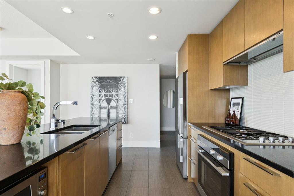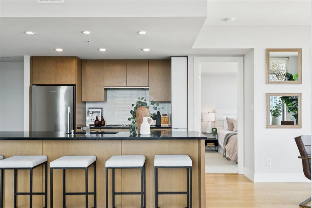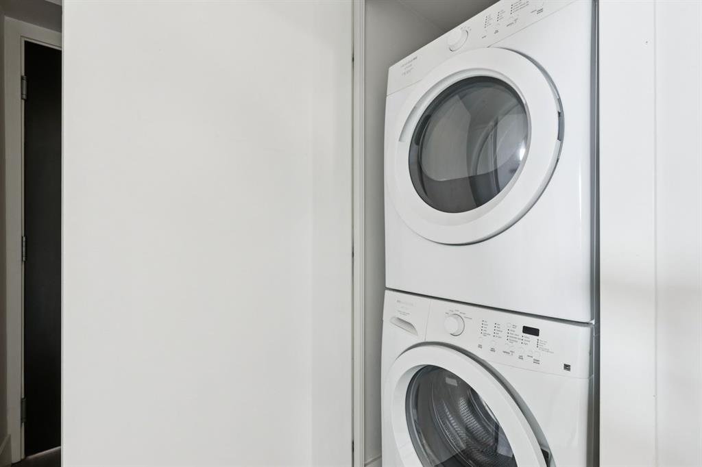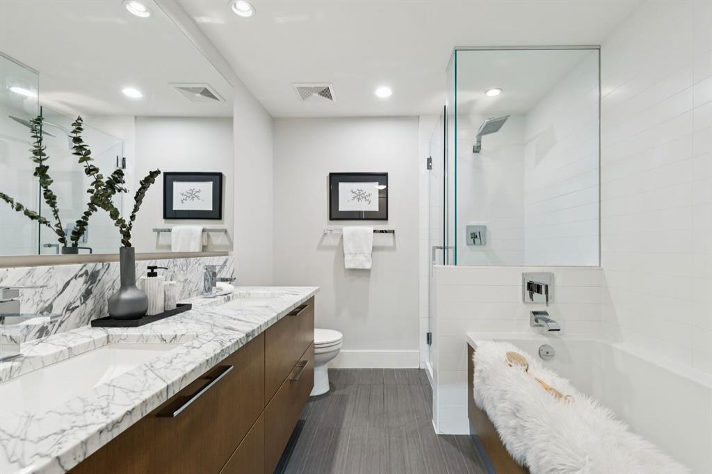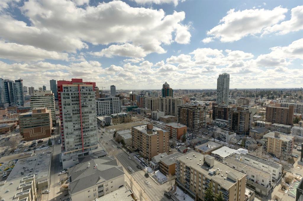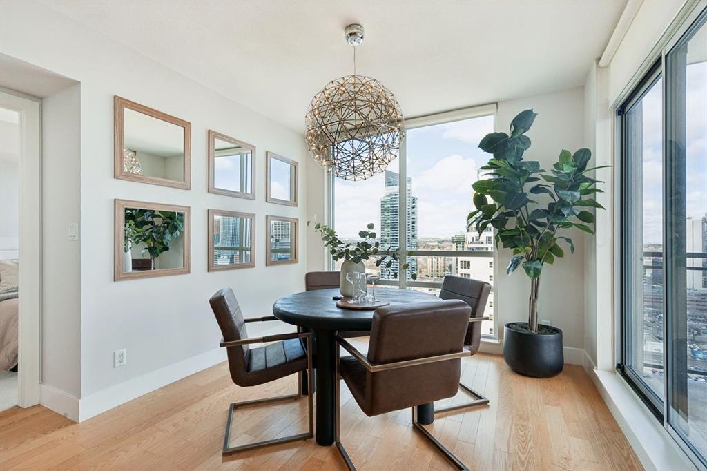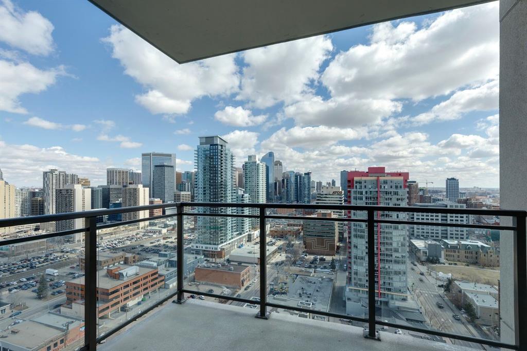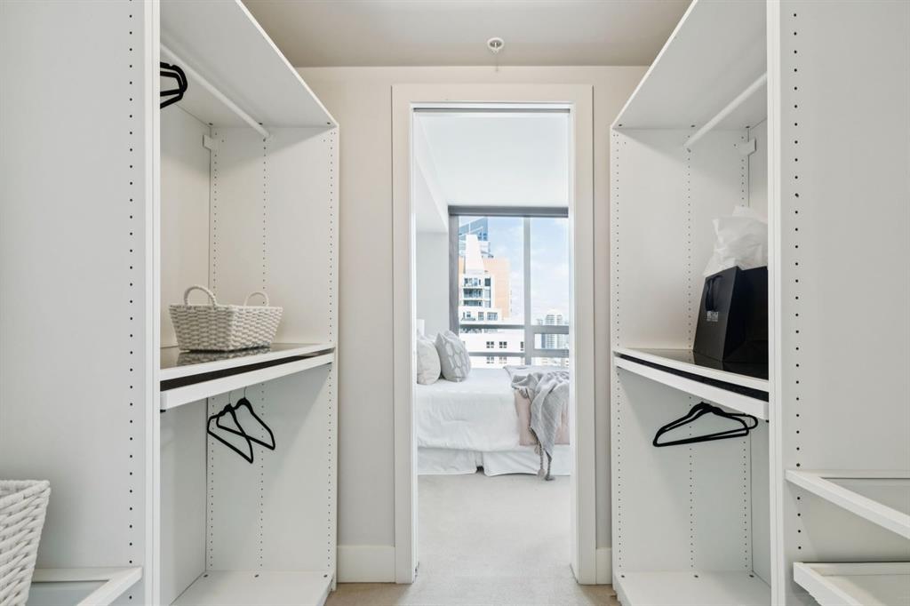 Experience elevated urban living in this stylish LUNA residence, where panoramic views stretch from the dazzling downtown skyline across North Hill, the Bow River valley, C.O.P., and out to the Rocky Mountains. Designed with one of the most sought after layouts, this bright and modern 2 bed/2 bath suite places the bedrooms on opposite sides for optimal privacy, with an open concept kitchen, living, and dining area at its heart. Flooded with natural light from floor-to-ceiling windows, the home exudes warmth while maintaining a sleek, contemporary aesthetic. The well equipped kitchen showcases warm wood cabinetry, black quartz counters, a glass backsplash, and premium stainless steel appliances including Fisher & Paykel refrigerator, gas cooktop, and oven, and a Blomberg dishwasher. A spacious island with seating flows seamlessly into the dining area, which opens onto a glass-railed balcony that’s perfect for soaking in breathtaking panoramic views. The primary retreat offers a custom walk-through closet leading to a luxurious 5pc ensuite featuring in-floor heating, a deep soaker tub, and a separate shower. The second bedroom is equally well appointed with dual closets and convenient access to a 3pc cheater ensuite. Thoughtful touches like custom blackout blinds, air conditioning, in-suite laundry, and additional in-suite storage ensure everyday comfort and convenience. Residents of LUNA enjoy an exceptional array of amenities including a fully equipped gym, yoga studio, steam spa, party room, guest suites, concierge service, visitor parking, and a serene outdoor zen garden with fireplace. Located in the heart of the vibrant Beltline, you’re just steps from shopping, dining, the Bow River pathways, and everyday essentials. Complete with a storage locker (Level 3 #316) and underground parking (P1 #L28) this home offers the perfect blend of luxury, functionality, and unbeatable inner-city lifestyle.
