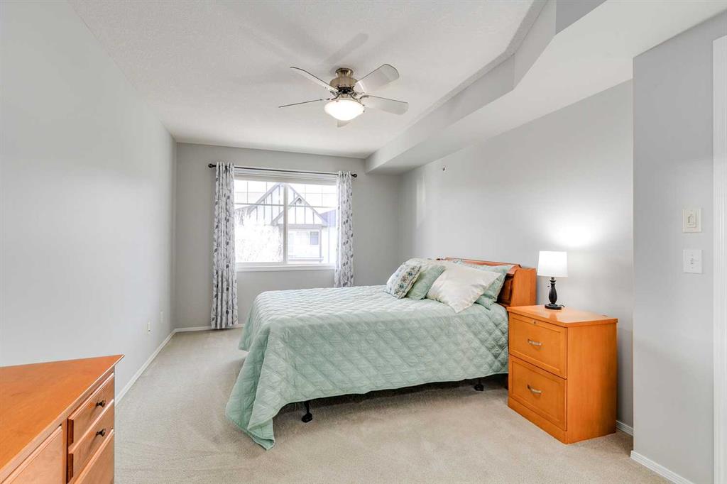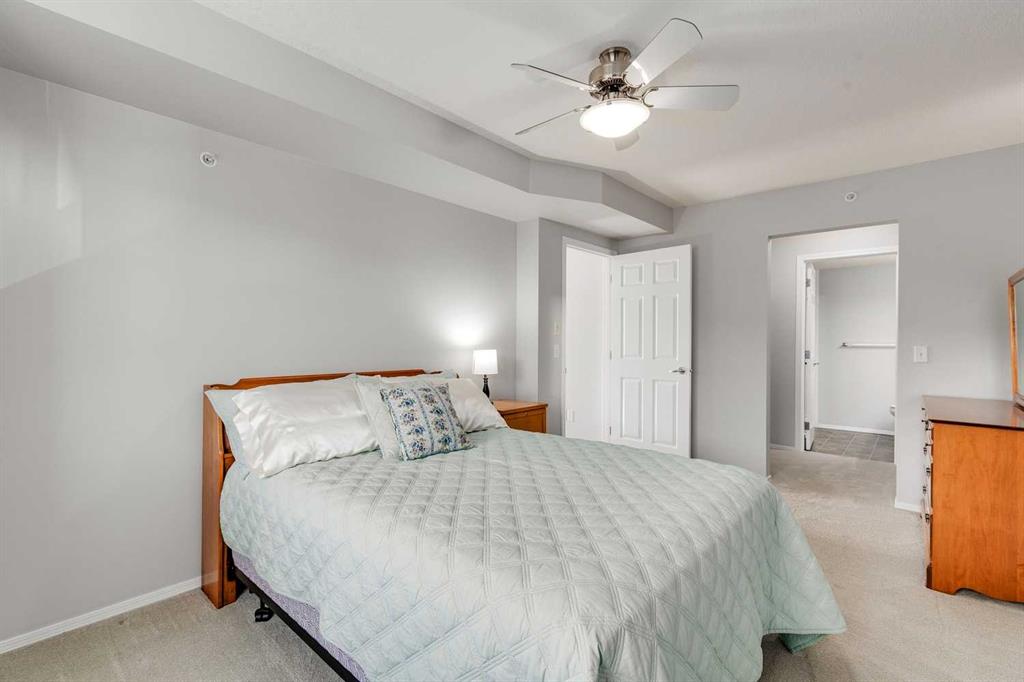 Spacious primary bedroom can easily accommodate your king bed and all your furniture plus the closet area is complete w/California closet built-ins…a great bonus providing more functionality. 3-pc ensuite with a walk-in shower is what you need for easy access. 2nd bedroom is well sized and a 4-pc bathroom completes the space. Insuite laundry plus a large storage room in the unit is an added perk. Did I forget to mention you have an underground parking stall? Your winter days will be easy, plus an extra storage locker in front.