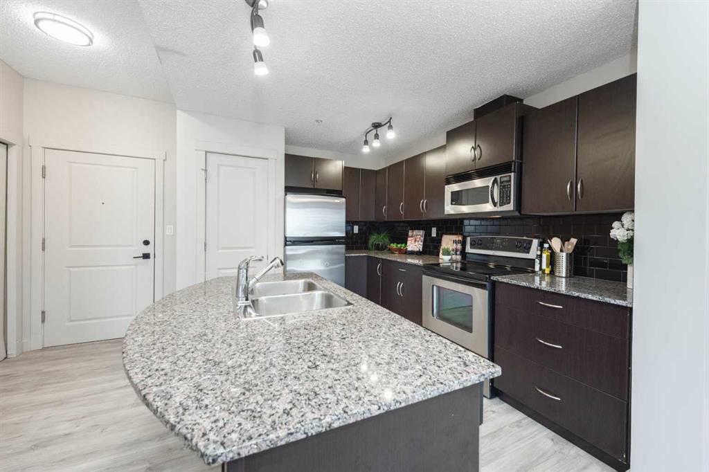Welcome to Gateway Garrison Green, a beautifully designed, pet friendly, QUIET, CONCRETE-BUILT building, walking distance to Mount Royal University, lush parks and Lincoln Park Shopping Centre, offering a great array of convenient coffee shops, services and restaurants! This is low-maintenance, high-style living in a great community—exactly what you’ve been looking for – perfectly suited for a first-time buyer or savvy investor. This move-in ready suite features freshly painted neutral walls, new luxury vinyl flooring throughout, high 9’ ceilings and a bright, inviting, open-concept layout. The spacious floor plan is perfect for working or studying from home and the large kitchen and dining area make it easy to host family and friends on weekends. The modern kitchen has stylish details including GRANITE countertops, quality cabinetry, pantry and STAINLESS-STEEL appliances. Step outside to the quiet & PRIVATE BALCONY (including gas BBQ hook-up), surrounded by tranquil views of the inner courtyard with its mature trees – a wonderful space to enjoy your peaceful morning coffee or evening wind-down! 4 piece main bath with soaker tub, IN-SUITE LAUNDRY plus a TITLED UNDERGROUND PARKING stall with extra storage completes the package. The condo fees include HEAT, WATER, and ELECTRICITY, making this a worry-free living experience! The building features outstanding resident amenities including a massive gym conveniently located near the unit, a book exchange, on-site management, a guest suite—an incredible bonus that means you can host friends and family without sacrificing your own space, spacious lounge that can be rented for private functions, bike storage and visitor parking. The location can’t be beat – easy access to major transit corridors & public transit options. Call now to book a private showing!