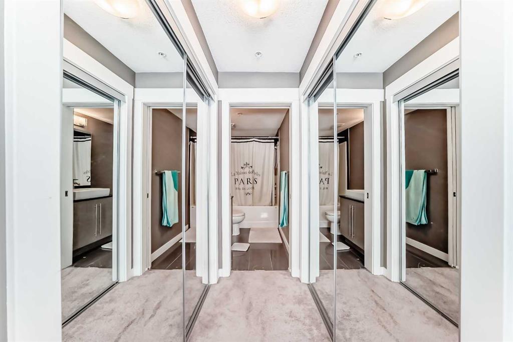 Rare! A 2 bedroom, 2 bathroom apartment with 2 TITLED PARKING stalls and LAKE ACCESS in the sought after community of Mahogany. Located on the third floor, close to the elevator, this sunny and bright unit has been impeccably maintained. With two bedrooms with huge closets located on either side of the unit for privacy, there are also 2 full, 4 piece baths, an in suite laundry room, a ‘den’ which is great flex space depending on your needs all joined together by the open great room. The kitchen has tons of counter and eating space and comes with stainless steel appliances. The sunny south facing balcony is a peaceful outdoor space. You will enjoy the convenience of two titled stalls, one underground, steps to the elevator includes additional storage and the other on the surface is just a short walk. Located close to the lake entrance (yes, private lake membership comes with this unit) where you can enjoy a variety of year round activities, included with your membership. Retail and most services are just a block or two away and quick and easy access to Stoney Trail is super convenient. Vacant possession is available any time after May 31st