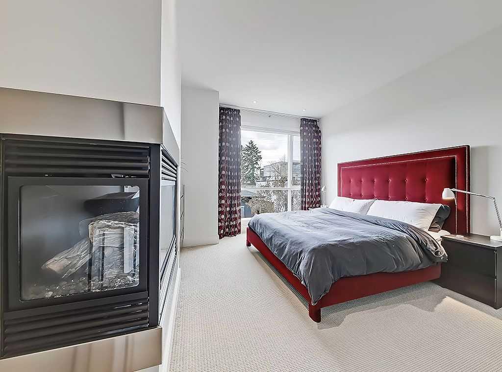 The SECOND LEVEL, offers two bedrooms separated for privacy, each with a 4 piece bath.  The primary includes a fireplace, walk-in closet, and spa-inspired ensuite with heated floors, jetted tub, dual vanities, shower with body sprays, rain shower, and bar shower heads, framed by 10mm glass.