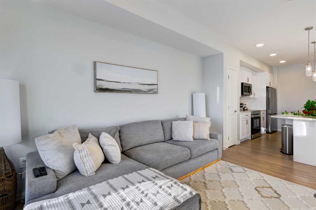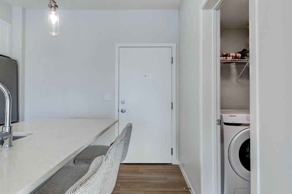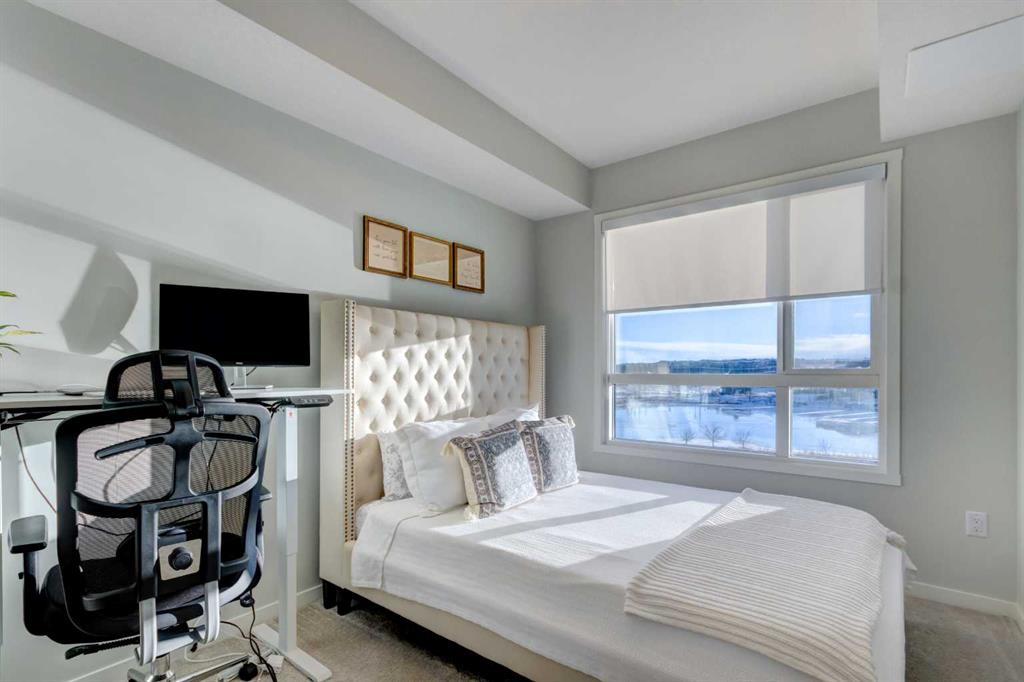 Welcome to this exceptional 1 bed, 1 bath condominium in the heart of Cranston’s coveted Riverstone community. Built in 2023, this third-floor unit offers a thoughtfully designed living space, seamlessly blending modern luxury with everyday comfort. Overlooking a serene pond, the large covered 72 sq ft balcony provides the perfect setting to enjoy your morning coffee or unwind in nature just steps from your door. The open-concept layout is as functional as it is beautiful. The kitchen is truly the heart of this home, offering stunning VIEWS OF THE POND and boasting QUARTZ countertops, STAINLESS STEEL Samsung appliances, extra pot lights, over-island pendant lighting, and a generously sized island. This condo stands out, including sleek window coverings, premium bathroom fixtures, all complemented by modern lighting that adds sophistication throughout. Practicality meets luxury with this unit’s light and fresh feel. The seller has cared for it immaculately. It still looks, feels and smells brand new still. It includes one TITLED HEATED underground parking stall. The complex is PET-FRIENDLY, accommodating fish, birds, and up to 2 cats or 2 dogs (weighing up to 77 LBS each). Secure BIKE STORAGE is on the main floor, inviting you to explore the area’s extensive network of walking and biking trails. Condo fees are $242.47. For a one bedroom condo, what else could you ask for? Living in Cranston’s Riverstone means being part of a vibrant, amenity-rich community. Century Hall, the resident association hub, features a skating rink, splash park, tennis and basketball courts, and a playground. Nature lovers will revel in the nearby Bow River and parks, perfect for floating, fishing, or simply enjoying the outdoors. With easy access to major roadways, South Health Campus, YMCA and a variety of shopping and dining options, this property offers the perfect balance of tranquility and urban convenience. This one-of-a-kind condominium presents a rare opportunity to enjoy a lock-and-leave lifestyle without sacrificing space, style, or comfort. Schedule your private viewing today and discover everything this stunning home and community have to offer!
