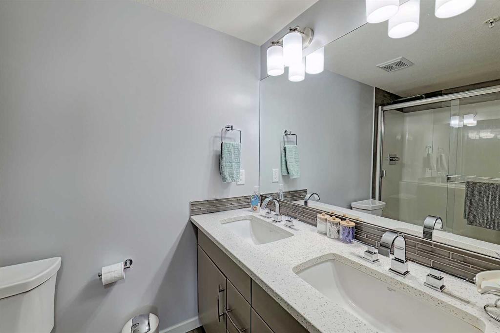 Beautifully kept – this spacious 2 bedroom, 2 bathroom unit in the sought after complex “The Pinnacle at Kincora” is sure to impress! Lovely curb appeal and perfectly situated within the community of Kincora within walking distance to parks, pathways, and everyday shopping conveniences. Offering 941 SF of functional design welcoming you into a large foyer where you will love the choice flooring and color pallet throughout that is visually captivating. The Chef’s kitchen showcases high-end stainless-steel appliances, mosaic tile backsplash, Quartz countertops and an over-sized island with eating bar. The dining area has French door access to the balcony and opens to the living room with cozy gas fireplace. The primary bedroom features a walk-in closet with custom built-ins and a 4 piece ensuite with dual sink vanity. A second guest room with dual closets, 4 piece bathroom and insuite laundry complete this unit. Don’t overlook the central AC for those hot summer days, titled underground parking stall, assigned storage locker and bike storage. Enjoy the maintenance free, 18+ adult living in a pet friendly building (upon board approval) today!