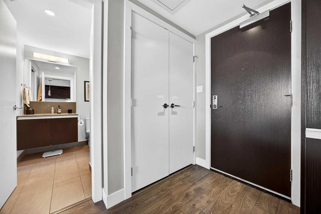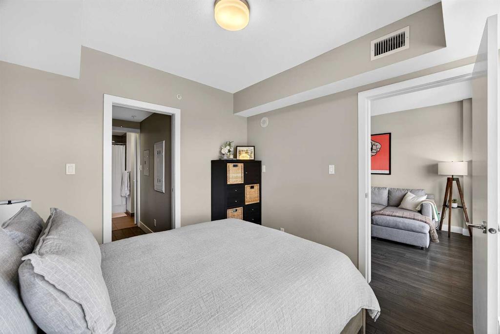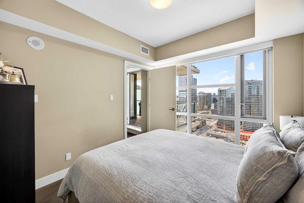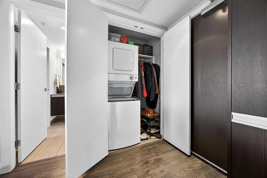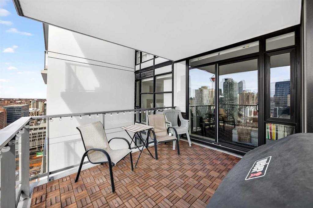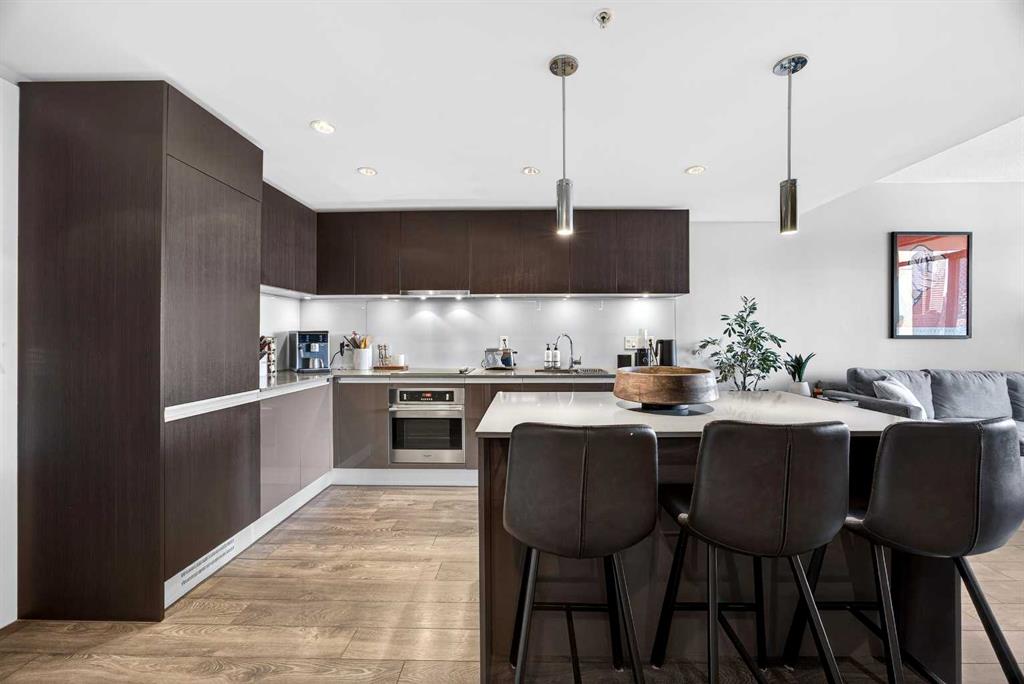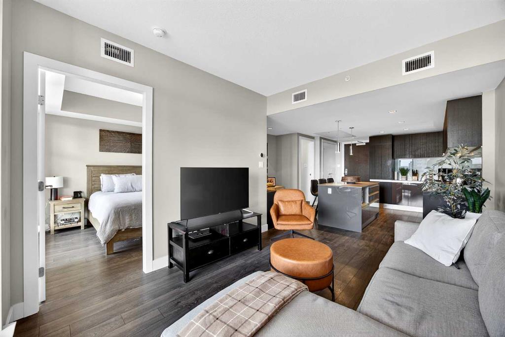 DOWNTOWN & MOUNTAIN VIEWS l HIGH FLOOR l BEST 1 Bed + 1 Bath Floor-Plan Available | Over 520 Sq. Ft. | Floor-to-Ceiling Windows | Titled Underground Parking | Premium Amenities | Prime Beltline Location l **Welcome to The Guardian, one of Calgary’s most well located high-rises in the heart of the Beltline. This bright and efficiently designed 1-bedroom, 1-bathroom condo offers over 500 sq. ft. of modern living space, ideal for professionals, first-time buyers, or investors seeking exceptional downtown value. The open-concept layout features sleek laminate flooring and expansive floor-to-ceiling windows showcasing impressive skyline and Stampede Park views. The contemporary kitchen is finished with modern cabinetry, quartz countertops, stainless steel appliances, and a central island perfect for casual dining or entertaining. The living area extends to a private balcony with a gas BBQ line — an ideal space to relax and enjoy the city lights. The spacious bedroom offers abundant natural light, a walk-through closet, and convenient access to a modern 4-piece bath. In-suite laundry and titled underground parking add everyday ease. Residents of The Guardian enjoy exceptional amenities, including a fully equipped fitness center, owner’s lounge and social room, concierge service, workshop, and secure bike storage. Located just steps from the Stampede Grounds, the Saddledome, 17th Ave, and Calgary’s best dining and entertainment, and all of the future action downtown – this is refined urban living in an unbeatable location.