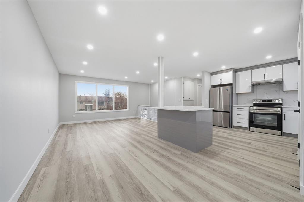 Welcome to this fully renovated, east-facing bi-level home located in the established community of Rundle, situated on a large 50 x 110 ft lot. The main floor offers a bright and functional layout featuring a modern kitchen, dining area, spacious living room, convenient laundry, a full bathroom, two bedrooms, and a primary bedroom with a 4-piece en-suite. The fully renovated basement includes an illegal suite with a separate entrance, complete with its own kitchen, large living room, two bedrooms, a full bathroom, and private in-suite laundry—ideal for extended family or rental potential. The property also features a detached oversized double garage along with an additional parking pad in the backyard, providing ample parking and storage. Conveniently located close to elementary, junior high, and high schools, public transit including bus routes and LRT station, shopping, and other amenities, this home presents an excellent opportunity for both homeowners and investors.