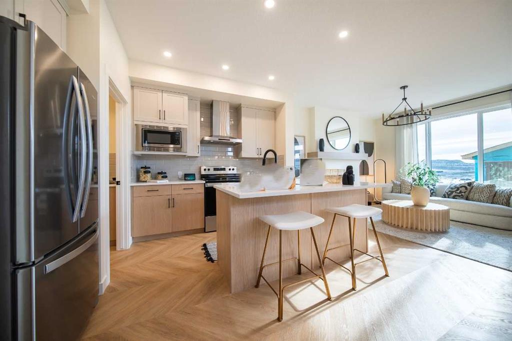 Discover luxury and versatility in the stunning Jade Showhome — where style meets functionality! Built by a trusted builder with over 70 years of experience, this home showcases on-trend, designer-curated interior selections tailored for a home that feels personalized to you. Energy efficient and smart home features, plus moving concierge services included in each home. This beautifully designed home features an open-concept layout with stainless steel appliances, a spice kitchen with gas range and pantry shelving, and an electric fireplace with a striking mantle above. A main floor bedroom and full bathroom with a walk-in shower offer added flexibility. Upstairs, enjoy the convenience of laundry (washer & dryer included), and a spacious ensuite with a walk-in shower. The fully developed basement of this home features a ONE BEDROOM LEGAL SUITE including full bathroom, 9′ ceilings and convenient side entrance — perfect for extended family living.. Photos are representative. Additional windows throughout bring in extra light, and a rear deck offers outdoor space to unwind. This energy-efficient home is Built Green certified and includes triple-pane windows, a high-efficiency furnace, and a solar chase for a solar-ready setup. With blower door testing that can may be eligible for up to 25% mortgage insurance savings, plus an electric car charger rough-in, it’s designed for sustainable, future-forward living. Featuring a full range of smart home technology, this home includes a programmable thermostat, ring camera doorbell, smart front door lock, smart and motion-activated switches—all seamlessly controlled via an Amazon Alexa touchscreen hub. Photos are representative.