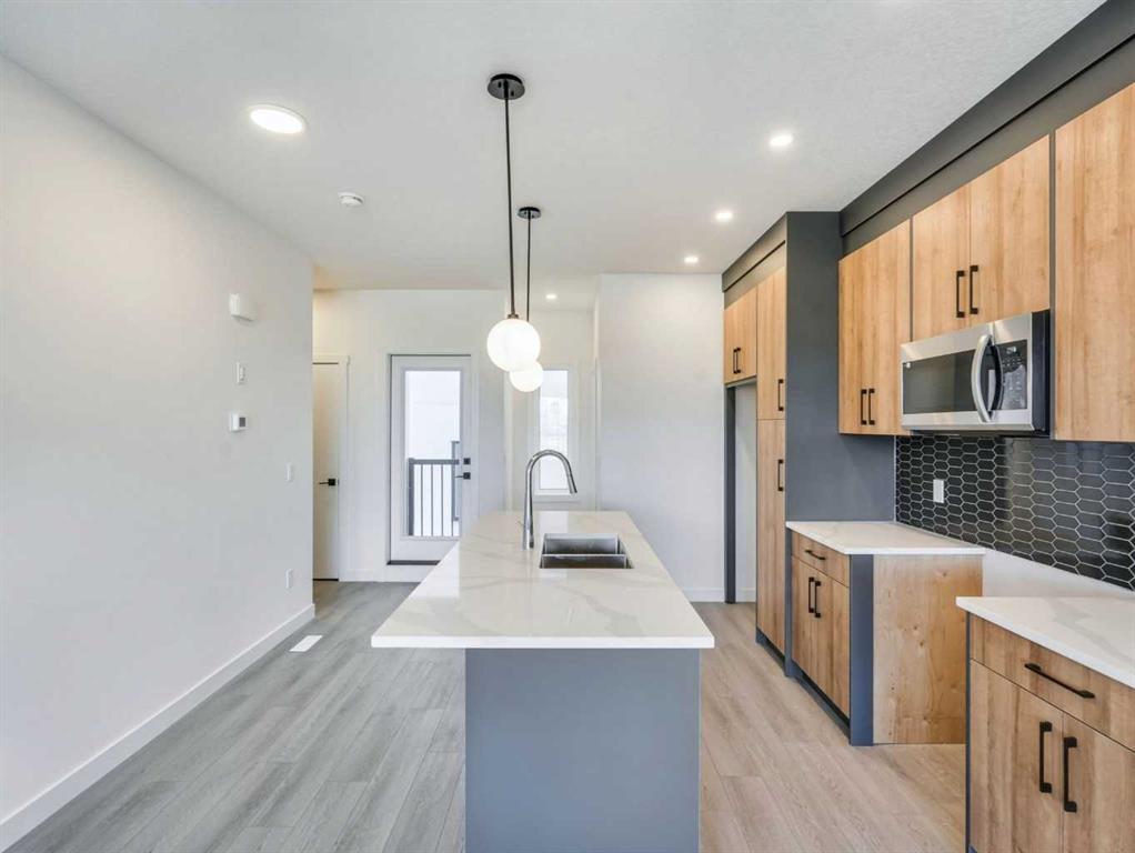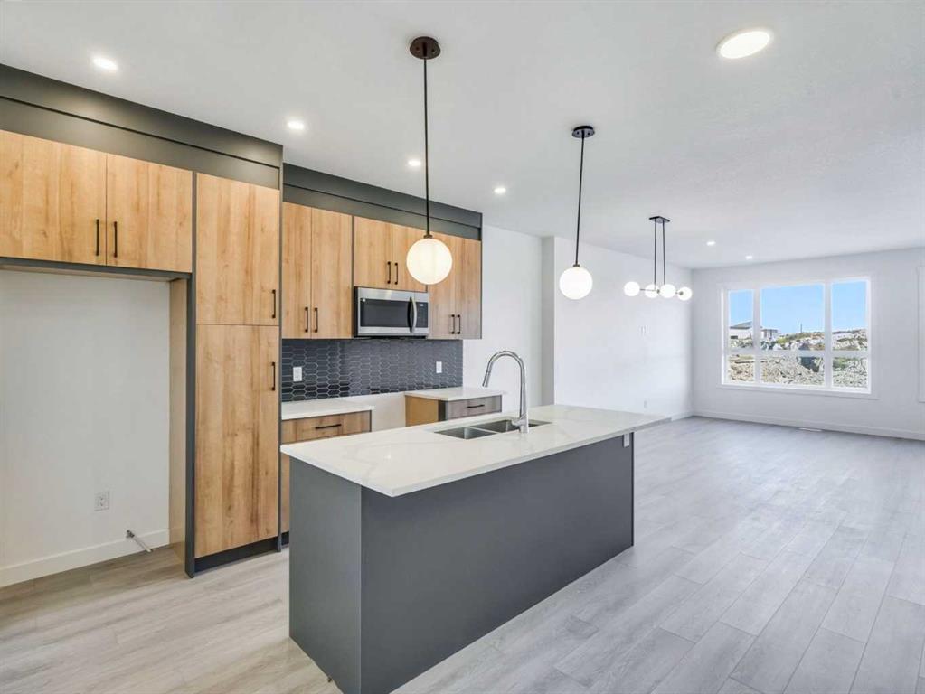 Welcome to this Beautiful, High end town home in sage hill. This unit has 9 foot ceiling on all levels, Stucco and stone exteriors, Black cladding huge windows. The ground floor has a Den and single car garage with the separate entrance. Main floor has a good size living, dining room, Kitchen, Pantry and a half bath. Upstairs has 2 bedrooms with 2 attached bathrooms and a laundry. Master bathroom has a custom standing shower. This unit is over 16 feet wide and fully upgraded with Pot lights, black hardware, “comfort height” vanities, 2 and a half bath and the list goes on. This complex is built on a 16 Acres site that has 100,00 sqft of commercial plaza and 5 minutes walk to Wal-Mart , 24000 sqft of medical building and all kind of shopping with in the complex. Realtor is related to the seller.