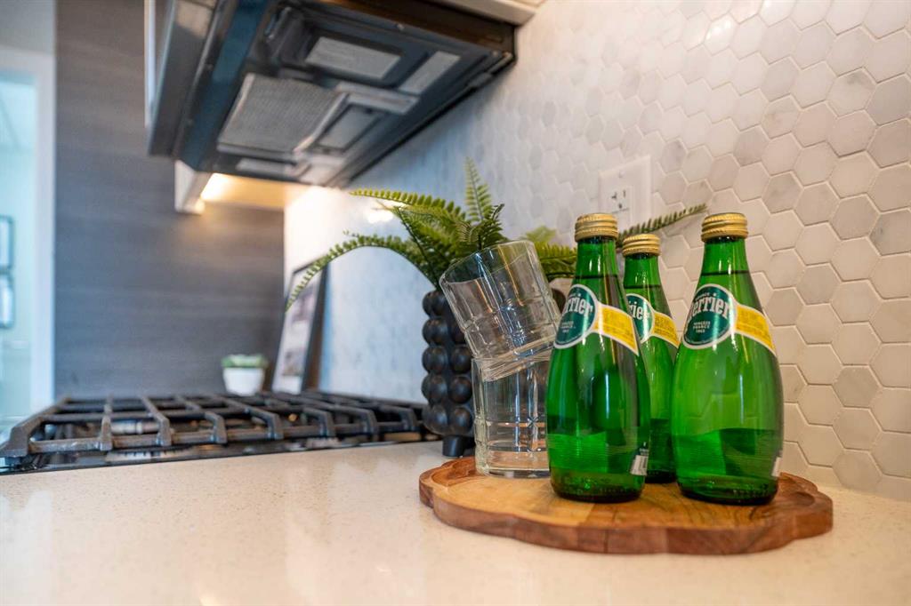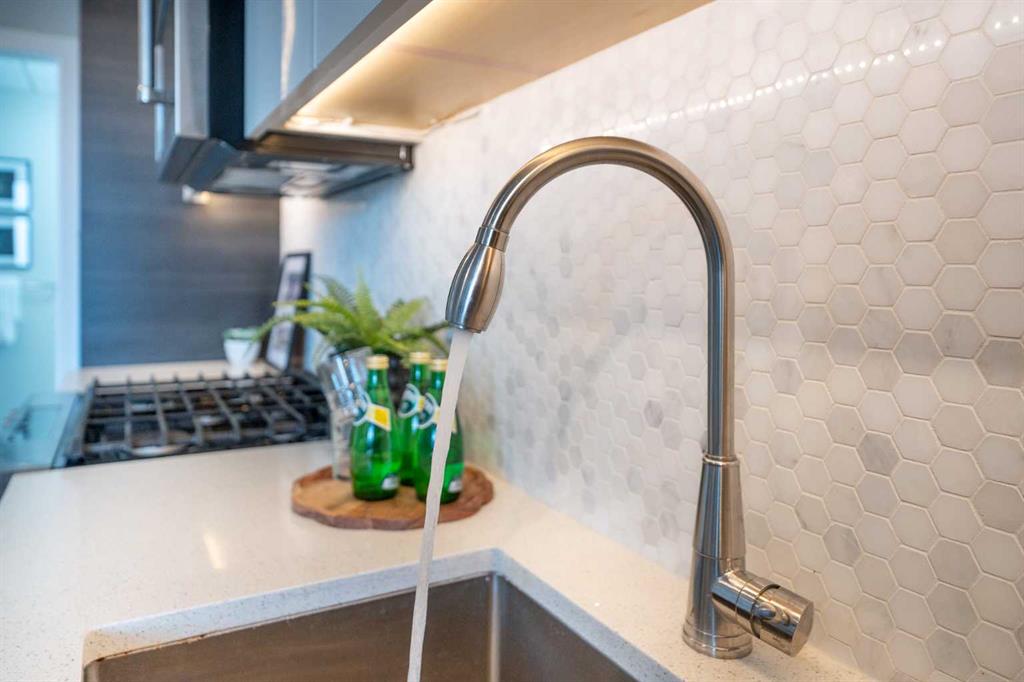 the unit offers exceptional soundproofing and energy efficiency. Inside, the modern kitchen is equipped with gas appliances and quartz countertops,