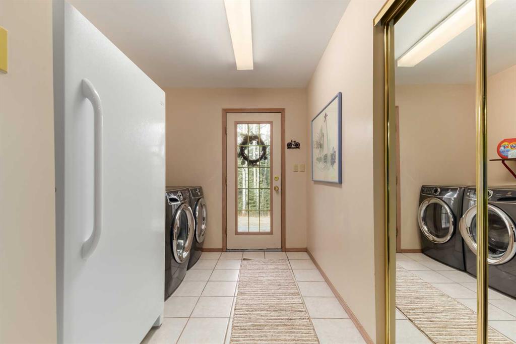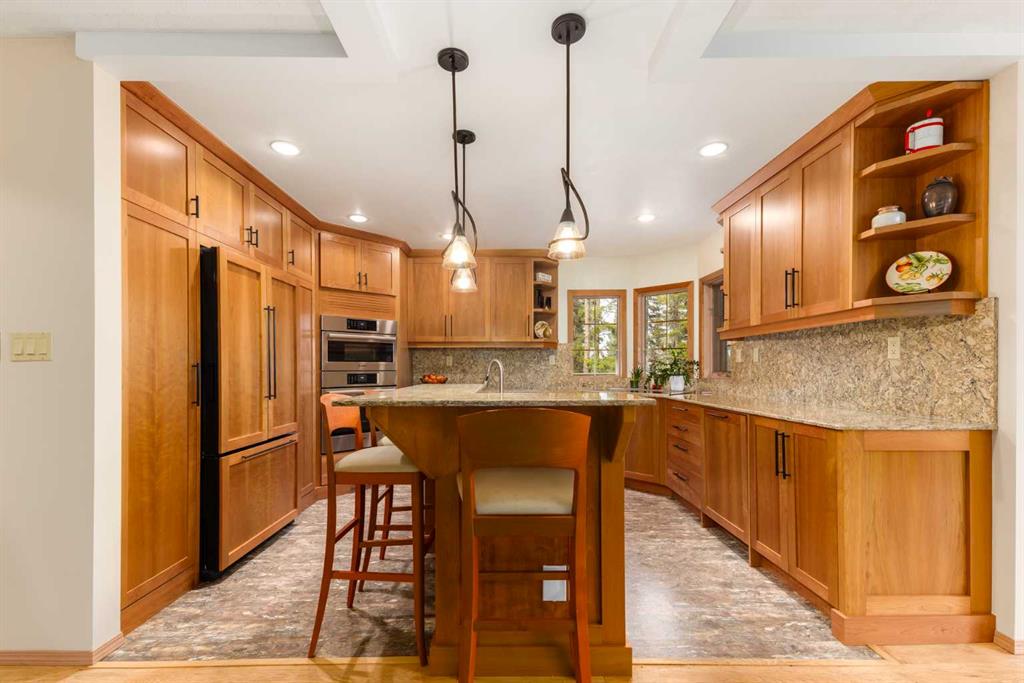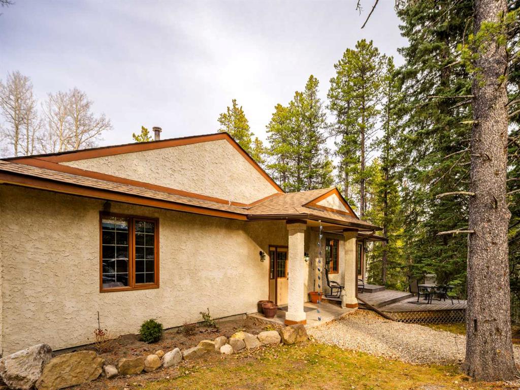 Opportunities like this are rarely offered. Set on 19.52 acres of untouched West Bragg Creek wilderness, backing directly onto the vast expanse of Kananaskis Country, this property represents one of the few remaining chances to own land of this scale, privacy, and natural beauty. Tucked deep within a private sanctuary, where the rhythm of the forest replaces the noise of the city, this walk-out bungalow feels less like a house and more like an invitation to live differently. Mornings start quietly here. The first blush of sunrise spills into the east-facing breakfast nook, casting warm light across treetops as deer wander unhurriedly past your windows. With the West Bragg Creek trail system just minutes from your doorstep, this is a landscape designed for the outdoor soul: bike at dawn, cross-country ski at noon, hike until the sky turns gold, then be home within moments. Inside, the home features a thoughtful custom kitchen renovation by Bragg Creek artisan Vertex Carpentry – a true celebration of local craftsmanship. Cherry-wood cabinetry is paired with quartz counters and a full suite of professional-grade appliances. Hidden among the woodwork are clever, custom-built storage solutions and tailored organizational details, making the space as functional as it is beautiful. A baker’s dream is found in the dual built-in wall ovens (steam + convection), the 5-burner induction cooktop, and the whisper-quiet dishwasher, bringing both artistry and intention to everyday living. The main level unfolds through an open living and dining area wrapped in windows, framing the forest as living artwork. A versatile bedroom on this level offers flexibility, serving beautifully as a home office, studio, or quiet reading retreat. Below, the walk-out level offers three additional spacious bedrooms – one currently used as a home gym. The oversized primary suite provides a generous walk-in closet and private ensuite, creating a retreat that feels grounding and serene. Though the Hamlet of Bragg Creek is only a short drive away, the feeling here is unmistakably private – quiet, wild, and deeply connected to nature. This is more than a home. It is a once-in-a-generation opportunity to own a rare stretch of land along the edge of Kananaskis Country – your own piece of nature’s paradise, waiting to be lived in.