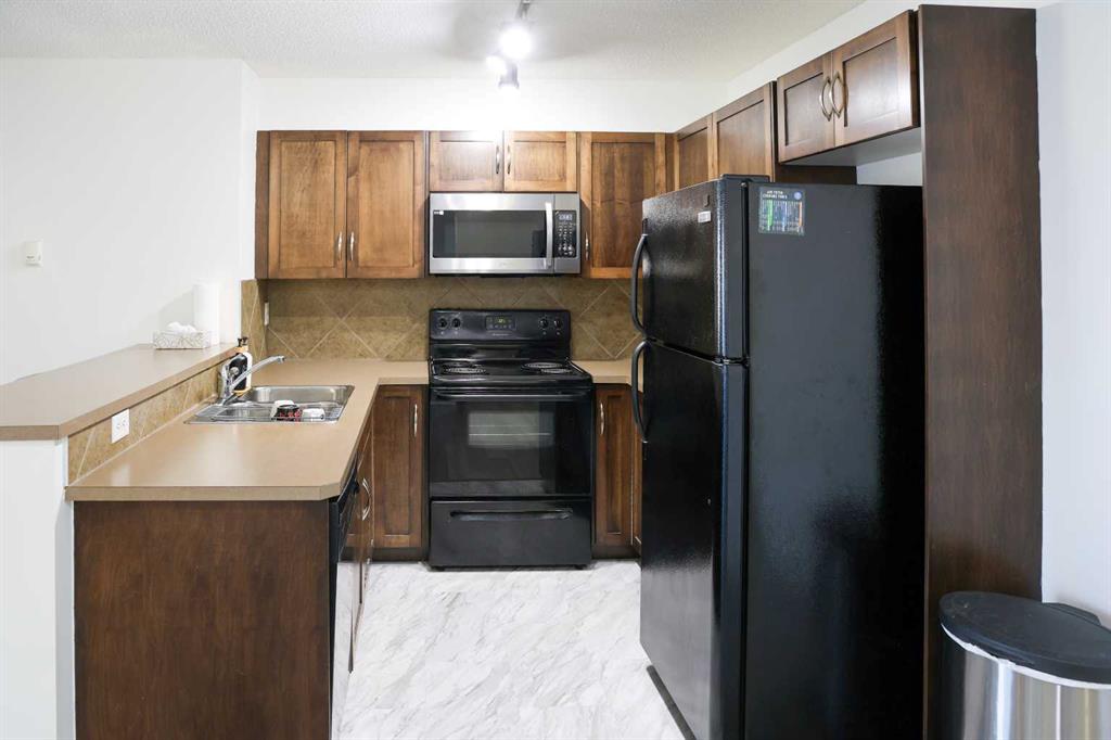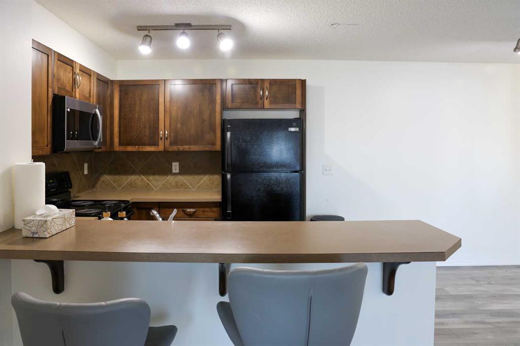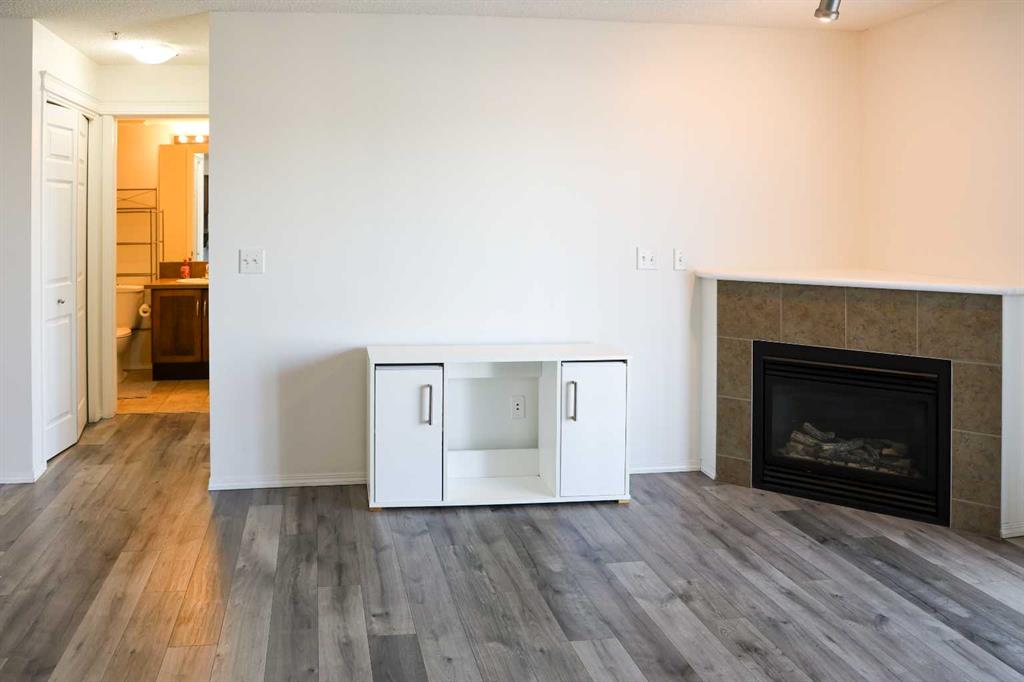 Welcome to this well maintained 2-bedroom, 2-bathroom unit that is conveniently located within walking distance to various amenities. The apartment is situated near a pond and walking paths, providing easy access to outdoor recreational activities. Additionally, it is close to shops, VIVO fitness centre, a library, theatres, and restaurants, offering residents a wide range of entertainment and dining options. The interior of the unit features laminate & luxury vinyl tile floor. The living room and dining area are designed in an open-plan concept, which enhances the feeling of spaciousness and allows for flexible furniture arrangements. A gas fireplace serves as a cozy focal point in the living room. The apartment offers a balcony with sliding glass doors, providing an opportunity to enjoy outdoor space and a view of lake. The balcony is equipped with a natural gas hook-up, allowing for convenient bbq without the need for a propane tank. The Master Suite in the apartment includes a walk-in closet and a 3-piece ensuite bathroom, providing a private and comfortable space. The second bedroom can be utilized as an office, or as a bedroom. Computer hook-ups are available in the front entry, making it easy to set up a home office area. For added convenience, the unit includes in-suite laundry facilities, allowing residents to do their laundry conveniently within their own living space. Furthermore, the property offers a titled, underground parkade where residents can park their vehicle. The parkade also provides extra storage space adjacent to the parking spot, allowing for organized storage of belongings. Overall, this 2-bedroom, 2-bathroom apartment offers a comfortable and convenient living experience with only minutes to bus stops, shopping, schools, restaurants, movies, and recreational centre.