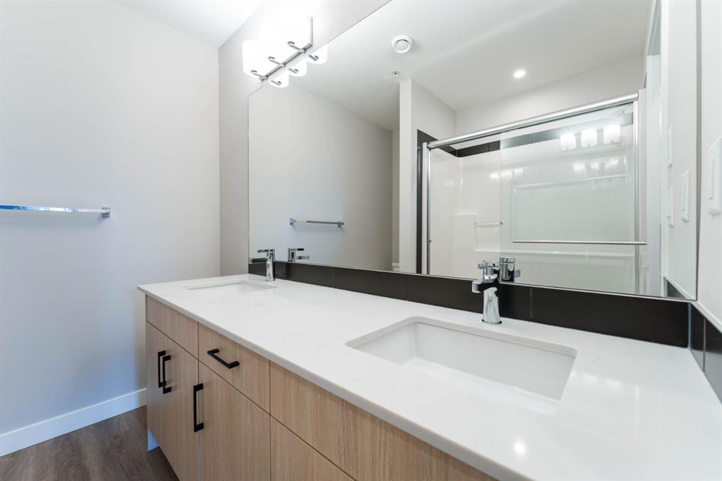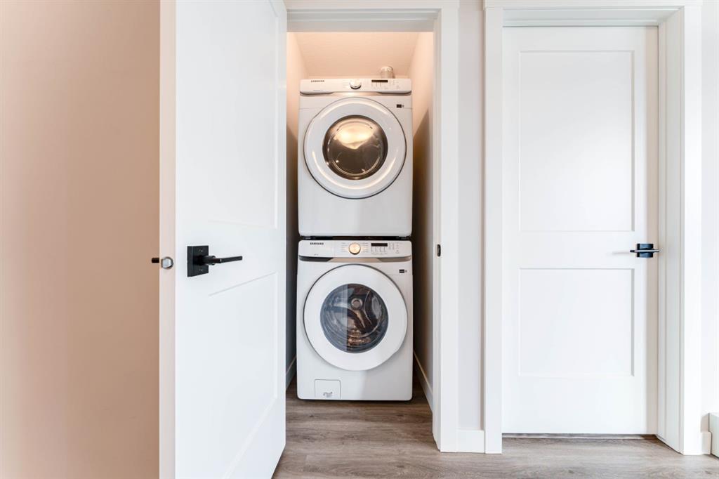 This is a gorgeous 3rd floor and nearly brand new 2 Beds 2 Baths and 2 Walk In Closets unit. Award winning Logel Homes built unit in the sought after Livingston community in the NW of Calgary. The east facing unit comes with Samsung stainless steel appliances, all quartz counters and black contrasting hardware. The generous sized rooms both have walk in closets and are well lit with good sized windows for adequate natural light. The living room leads to the big balcony, which has a BBQ gas line. The unit is in a cozy smaller condo with lots of great amenities surrounding it, like ponds, walking trails and a great community recreation center, the Hub! This is a must see unit! Listing agent has an interest.