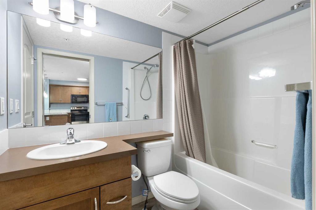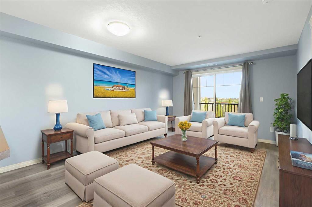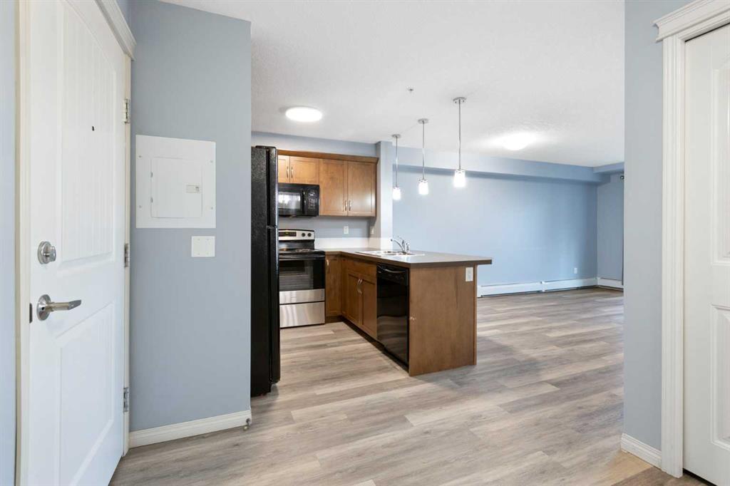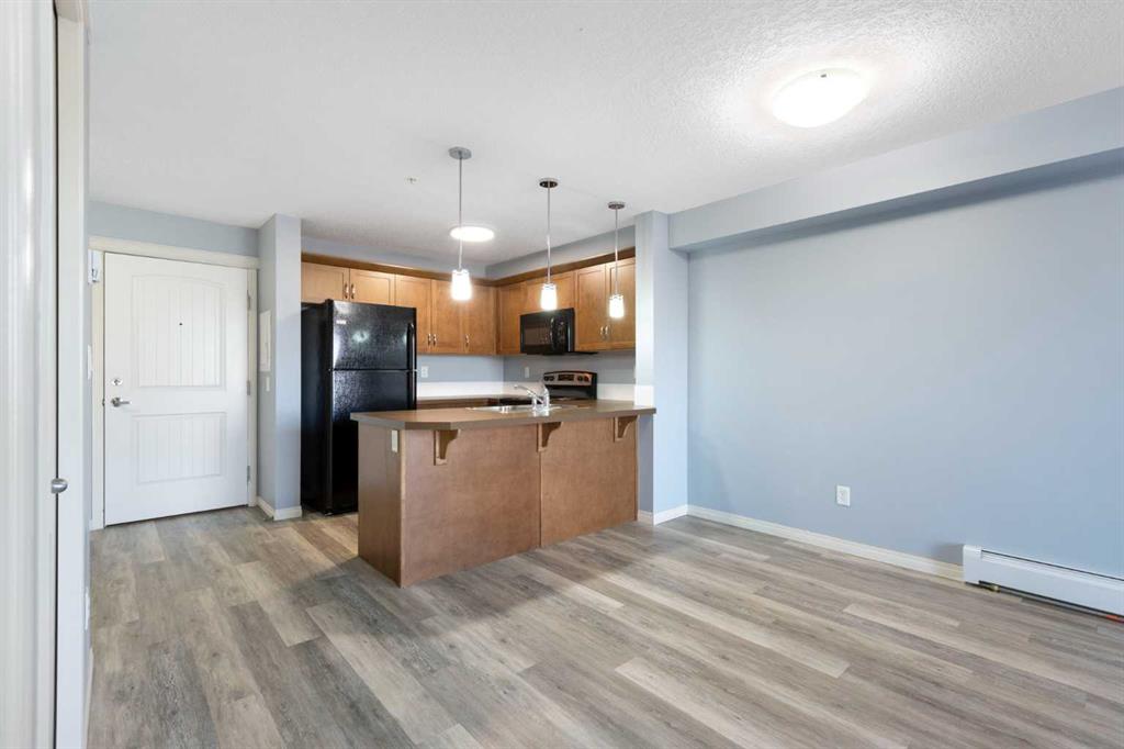 Welcome to this immaculate 1 bedroom, 1 bathroom condo, perfectly situated on the 3rd floor of a quiet and well-maintained building in the highly sought-after community of Panorama Hills. With its functional layout, and excellent location, this home is ideal for first-time buyers, investors, or those looking to downsize. The open-concept floor plan is bright and inviting, featuring durable LVP flooring, soft-close cabinetry, and a convenient breakfast bar. The living space is filled with natural light and offers enough room to set up a home office. The spacious bedroom includes a walk-through closet that leads directly into the 4-piece ensuite bath. Enjoy the outdoors on your north-facing balcony, complete with a gas hook-up for barbecuing and a peaceful view that stays cool during the summer months. Additional highlights include in-suite laundry, a titled outdoor parking stall, and an assigned storage unit. Condo fees cover heat, water, and more, leaving you to only pay for electricity and internet. The building is pet-friendly with board approval and features a newer roof for added value. This unbeatable location offers easy access to major roadways including Stoney Trail, Deerfoot Trail, and Harvest Hills Blvd, making commuting a breeze. You will also be just minutes from shopping, banks, restaurants, and entertainment options. Nearby CrossIron Mills and the airport provide even more convenience, while schools, parks, and recreation facilities within the community add to the lifestyle appeal. HOA fees are included in the condo fees, making for worry-free living. Don’t miss out on this fantastic opportunity to own a well-maintained, affordable condo in a great neighbourhood.