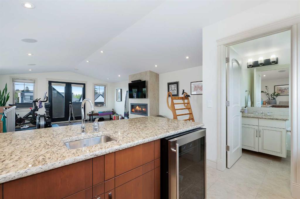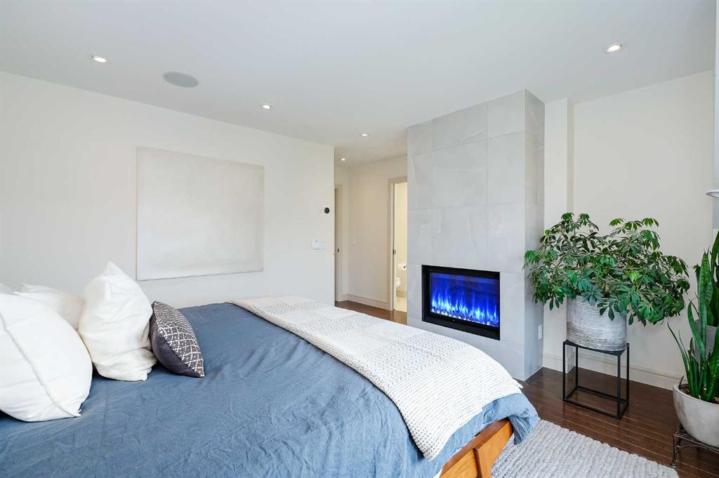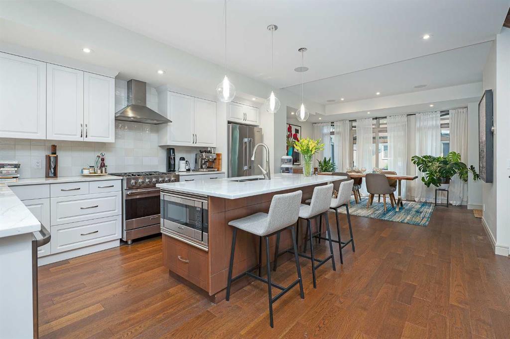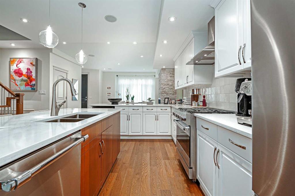 Meticulously cared for & beautifully updated 3+2 bedroom home in the established community of Richmond, offering over 3400 sq ft of living space! The main level presents new hardwood flooring & high ceilings, showcasing the front living room anchored by a floor to ceiling fireplace that transitions to the refreshed kitchen, tastefully finished with new counter tops & island/eating bar with new light fixtures, freshly painted cabinets, new backsplash & stainless steel appliances. The dining area provides ample space to host family & friends. Completing the main level is a mudroom with California Closet coat area plus a 2 piece powder room. An open riser staircase leads to the second level that hosts 3 bedrooms, a 5 piece main bath & laundry room. The primary retreat with modernised fireplace & Juliet balcony boasts a walk-in closet & secluded 5 piece ensuite with dual vanities, relaxing soaker tub & rejuvenating steam shower. The third level with vaulted ceiling is a great entertaining space featuring a large family/media room with fireplace & balcony access, wetbar & 2 piece bath. Basement development includes new carpet, huge recreation room with California Closet built-ins, two additional bedrooms, 3 piece bath, wine cellar & plenty of storage. Other notable features include fresh paint throughout, central air conditioning & built-in speakers throughout. Outside, enjoy the lovely front garden with patio & sunny south back yard with patio that can be shelered by an awning. Parking is effortless with a double detached garage. The location is incredibly convenient, steps to 2 parks & close to schools, shopping, public transit & easy access to Crowchild Trail. Immediate possession is available!