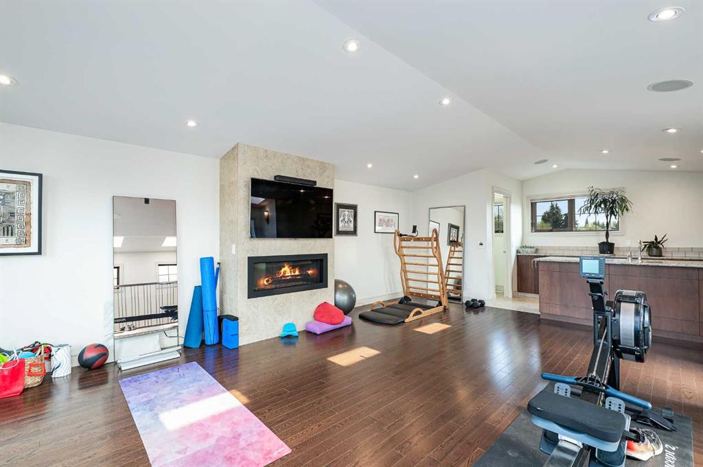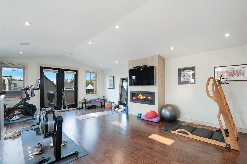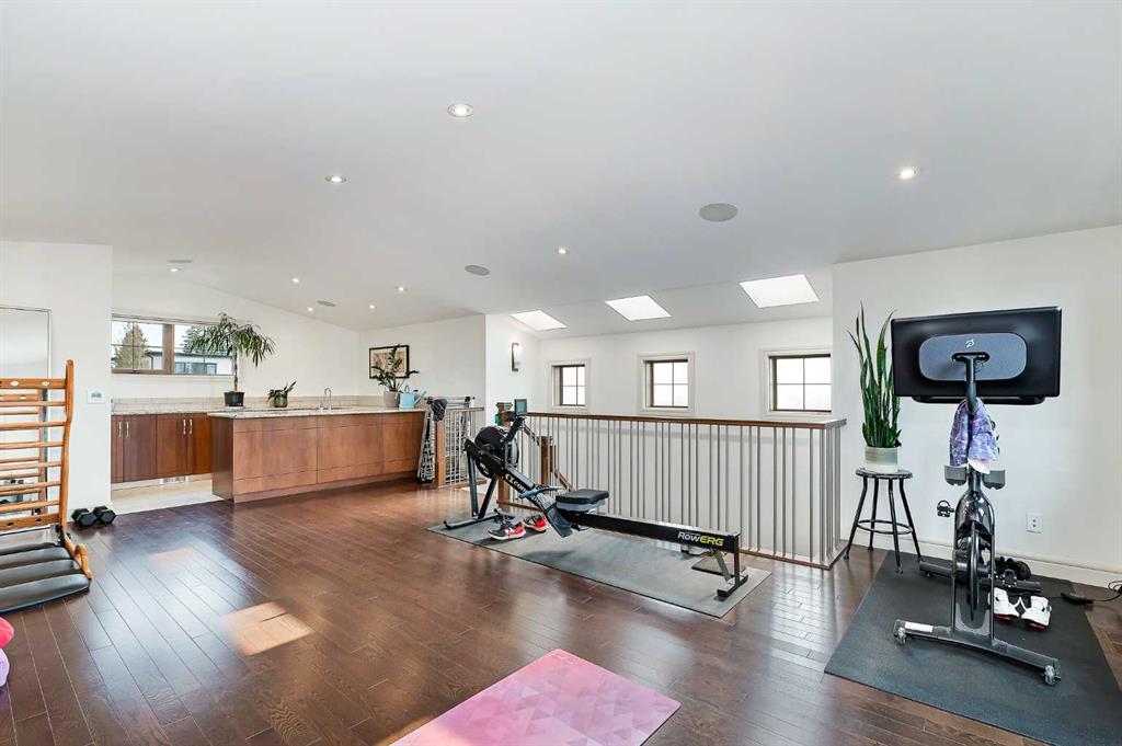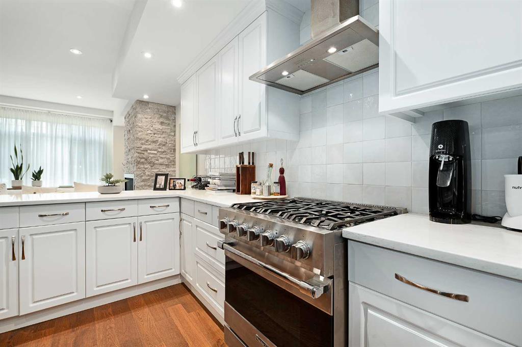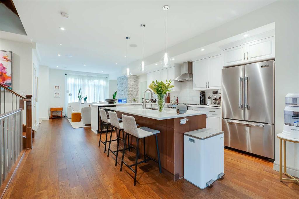 Meticulously cared for & beautifully updated 3+2 bedroom home in the established community of Richmond, offering over 3400 sq ft of living space! The main level presents new hardwood flooring & high ceilings, showcasing the front living room anchored by a floor to ceiling fireplace that transitions to the refreshed kitchen, tastefully finished with new counter tops & island/eating bar with new light fixtures, freshly painted cabinets, new backsplash & stainless steel appliances. The dining area provides ample space to host family & friends. Completing the main level is a mudroom with California Closet coat area plus a 2 piece powder room. An open riser staircase leads to the second level that hosts 3 bedrooms, a 5 piece main bath & laundry room. The primary retreat with modernised fireplace & Juliet balcony boasts a walk-in closet & secluded 5 piece ensuite with dual vanities, relaxing soaker tub & rejuvenating steam shower. The third level with vaulted ceiling is a great entertaining space featuring a large family/media room with fireplace & balcony access, wetbar & 2 piece bath. Basement development includes new carpet, huge recreation room with California Closet built-ins, two additional bedrooms, 3 piece bath, wine cellar & plenty of storage. Other notable features include fresh paint throughout, central air conditioning & built-in speakers throughout. Outside, enjoy the lovely front garden with patio & sunny south back yard with patio that can be shelered by an awning. Parking is effortless with a double detached garage. The location is incredibly convenient, steps to 2 parks & close to schools, shopping, public transit & easy access to Crowchild Trail. Immediate possession is available!