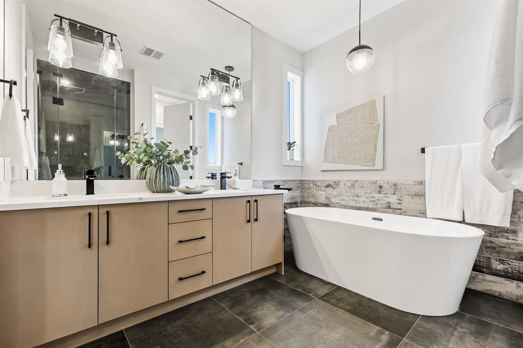 Upstairs, you’ll find three bedrooms, including a generously sized primary suite with a spa-inspired 5-piece ensuite featuring a fully installed steam shower, an extra-large soaker tub, and a huge walk-in closet. The additional bedrooms also offer walk-in closets and large windows that fill the rooms with natural light.