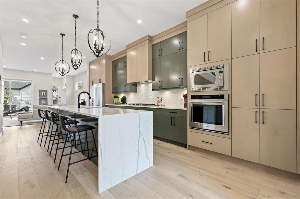 Located in the desirable community of Inglewood, this modern home sits on a quiet extra-wide street with a sunny west-facing backyard and an oversized lot. The main floor features a beautiful open-concept layout with a large kitchen, professional-grade stainless steel appliances, and hard surface counters. Hardwood flooring flows through the main and upper levels, complemented by a spacious family room with soaring 10-foot ceilings.