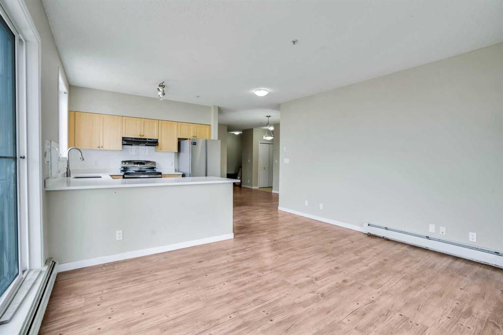 Amazing value for an amazing amount of space in this bright and spacious 2-bedroom plus den, 2 full bathroom corner unit condo! This large corner unit is flooded with natural light and features a larger-than-average wraparound balcony—perfect for relaxing or entertaining. The home is in excellent condition and located in a very clean and well-maintained building. The primary bedroom is generously sized and includes a spotless private ensuite bathroom, while the second bedroom has a convenient cheater door to the second full bath, essentially giving it ensuite access as well. A bonus den area offers the perfect spot for a tucked-away home office. The large kitchen is outfitted with maple cabinets, brand new quartz countertops, and brand new stainless steel appliances including a stove, fridge, and dishwasher. Both bathrooms also feature brand new quartz countertops, and luxury vinyl flooring has been installed throughout the living, dining, and bedroom areas. Additional highlights include in-suite laundry, a separate storage locker on the same floor, and a surface parking stall. Located close to major schools, shopping, Genesis Centre, train station, bus stops, walking trails, parks, and playgrounds—this unit combines space, style, and convenience at an unbeatable price. Don’t miss the photos and 3D tour!